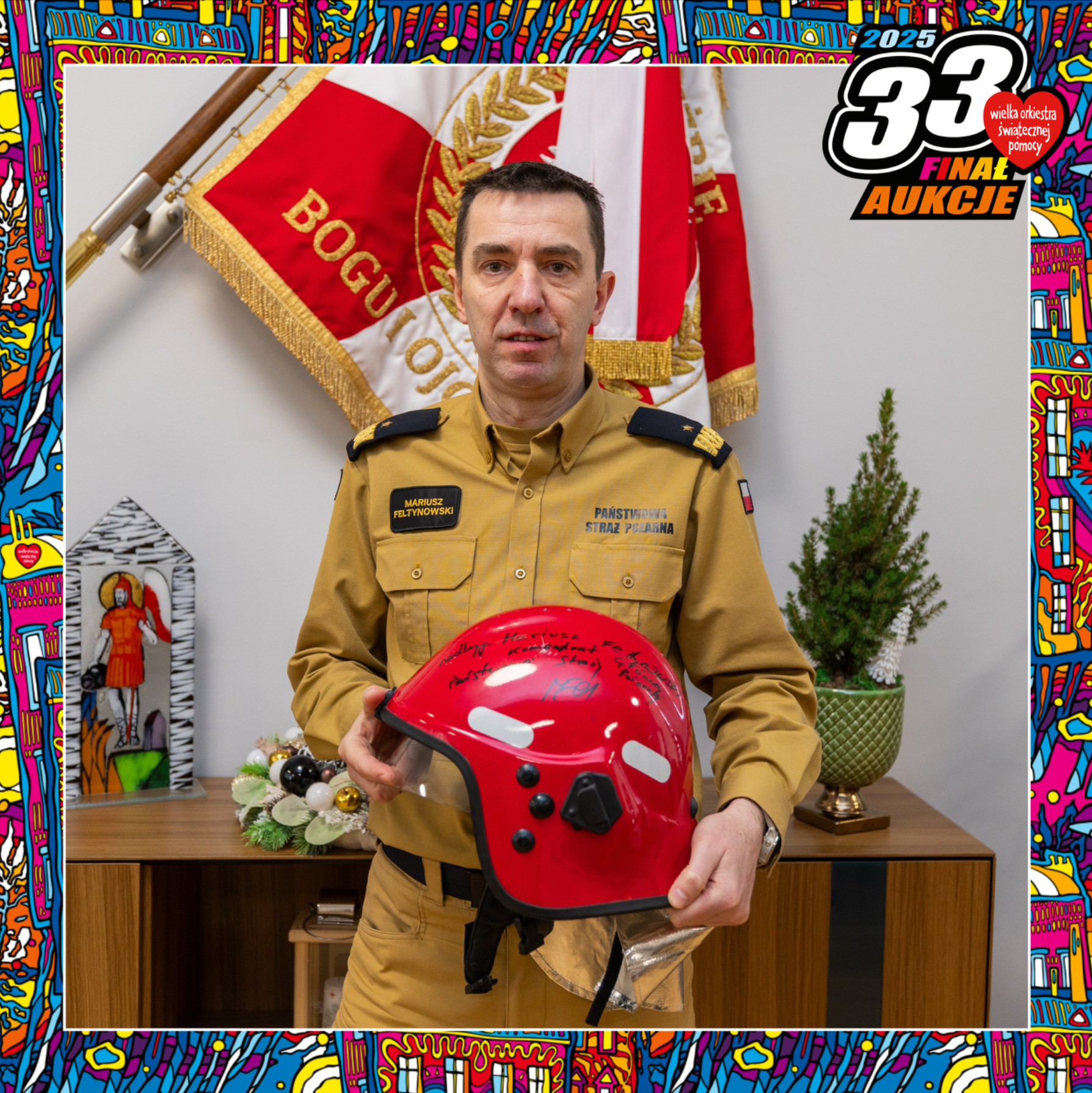 Komendant Główny Państwowej Straży Pożarnej nadbryg. dr inż. Mariusz Feltynowski przekazuje na aukcję osobisty Hełm strażacki ZS-03 z autografem.