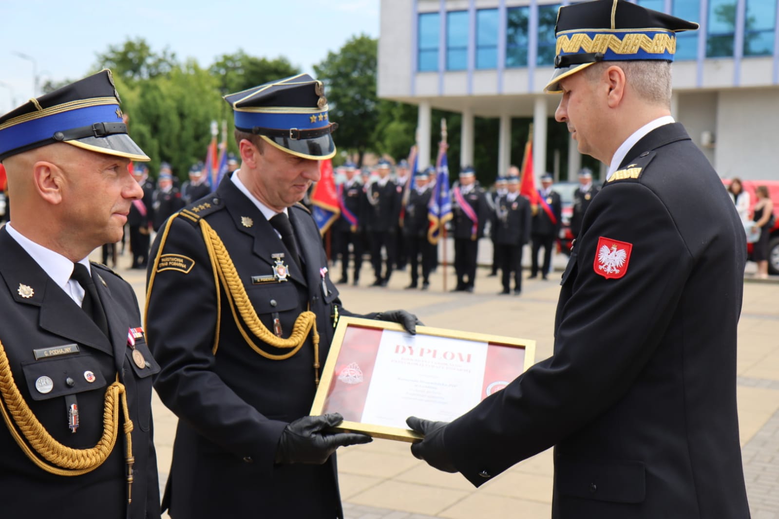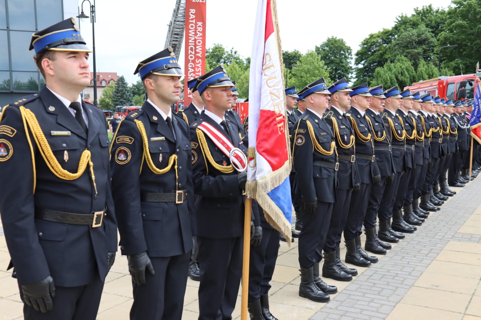 Szczególnym wyróżnieniem była obecność zastępcy komendanta głównego PSP nadbryg. dr. inż. Grzegorza Szyszko, który przyjął meldunek od dowódcy uroczystości i wygłosił okolicznościowe przemówienie, dziękując strażakom za codzienną ofiarną służbę.