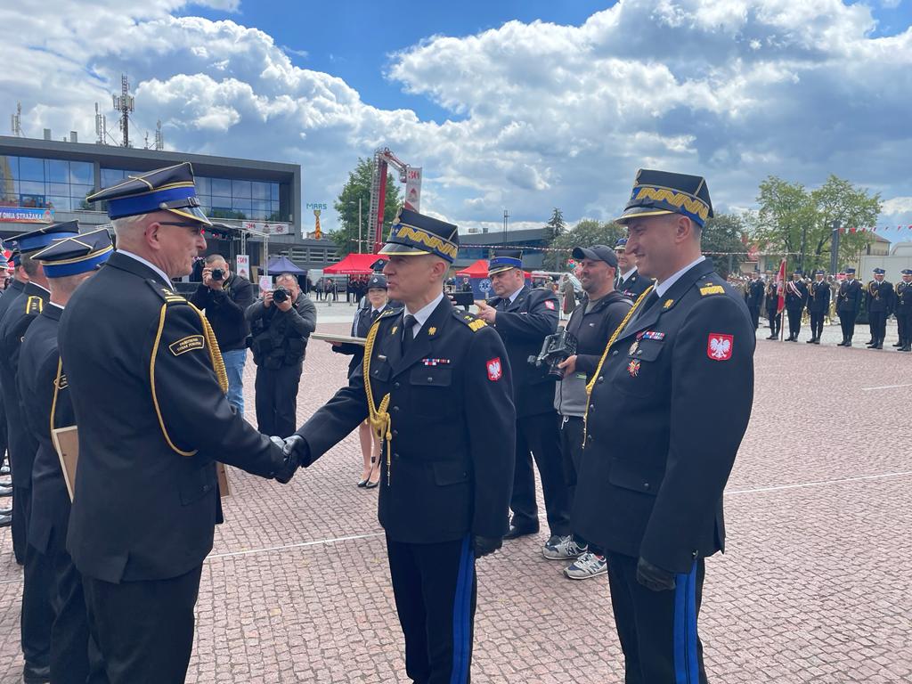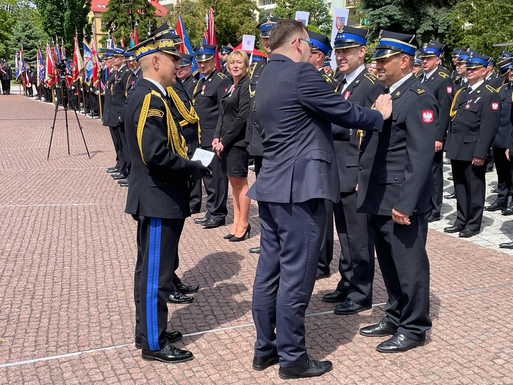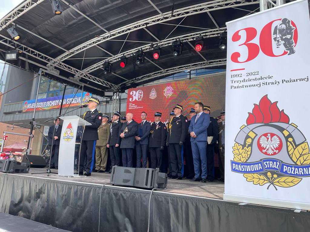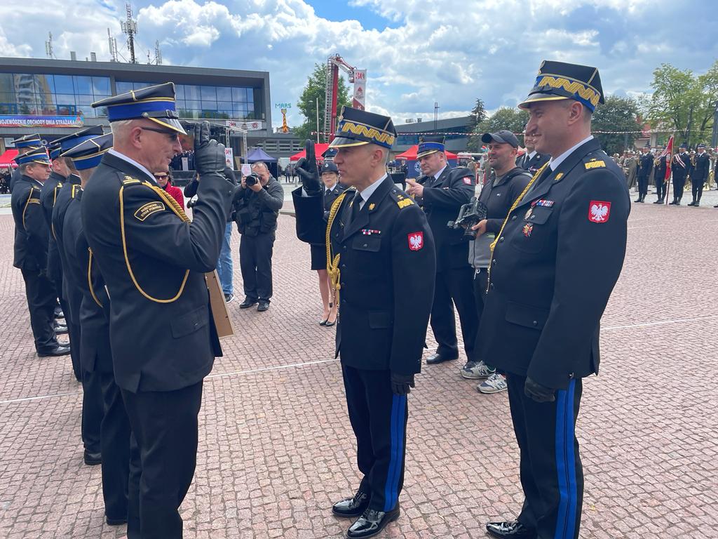 „ Polskiego orła w koronie nosimy też za granicą. Jesteśmy podczas katastrof: Haiti, Nepalu w Bejrucie. Jesteśmy podczas pożarów: Szwecji, Grecji, Turcji. Pomagamy przy powodziach. Pomagamy humanitarnie w wielu państwach, walczymy z pandemią. Wszędzie tam był polski strażak i niósł ze sobą hasła z roty ślubowania, realizowane na najwyższym poziomie”- powiedział komendant główny PSP podczas przemówienia.