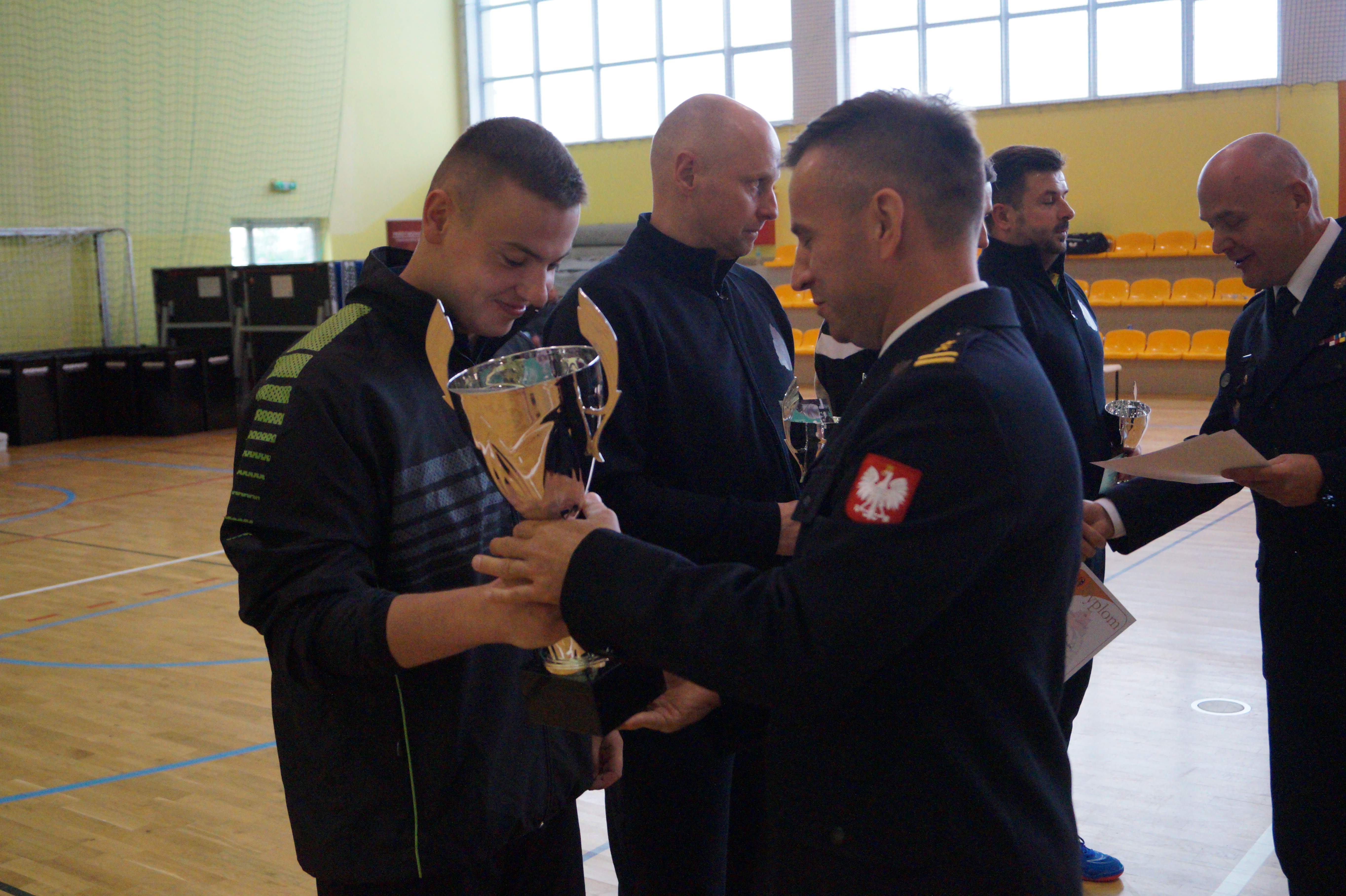 Najlepsi zawodnicy otrzymali okolicznościowe trofea i upominki, które wręczyli: bryg. Marcin Bielakowicz, zastępca podlaskiego komendanta wojewódzkiego PSP oraz bryg. Szymon Ławecki, przedstawiciel komendanta głównego PSP.