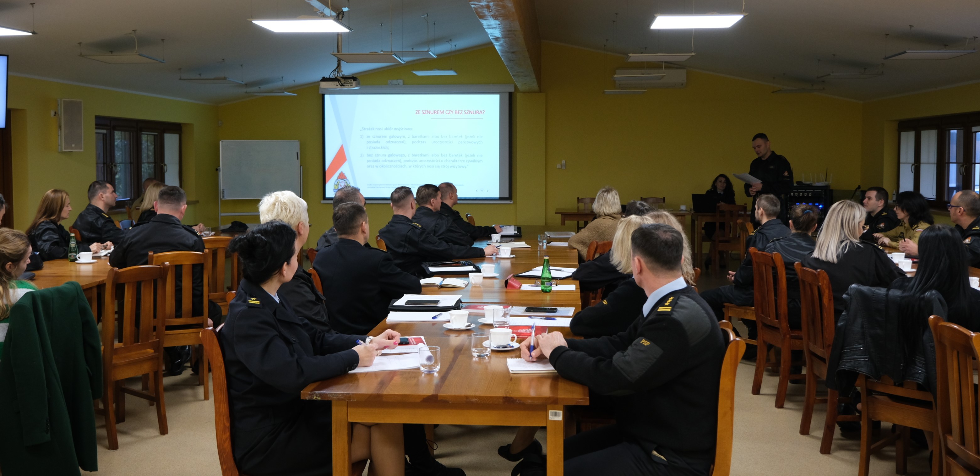 Podczas narady szkoleniowej, przedstawiciele Biura Komendanta Głównego oraz Biura Kadr Komendy Głównej PSP pod przewodnictwem dyrektorów Biur, st. bryg. Marka Piekutowskiego oraz st. bryg. Tomasza Zająca, przekazali uczestnikom informacje i omówili zagadnienia dotyczące między innymi: ceremoniału pożarniczego, roli prewencji społecznej, w tym realizowanych kampanii społecznych, precedencji, działalności informacyjnej w PSP, struktur organizacyjnych komend wojewódzkich i powiatowych / miejskich PSP oraz dostępności jednostek PSP dla osób ze szczególnymi potrzebami.