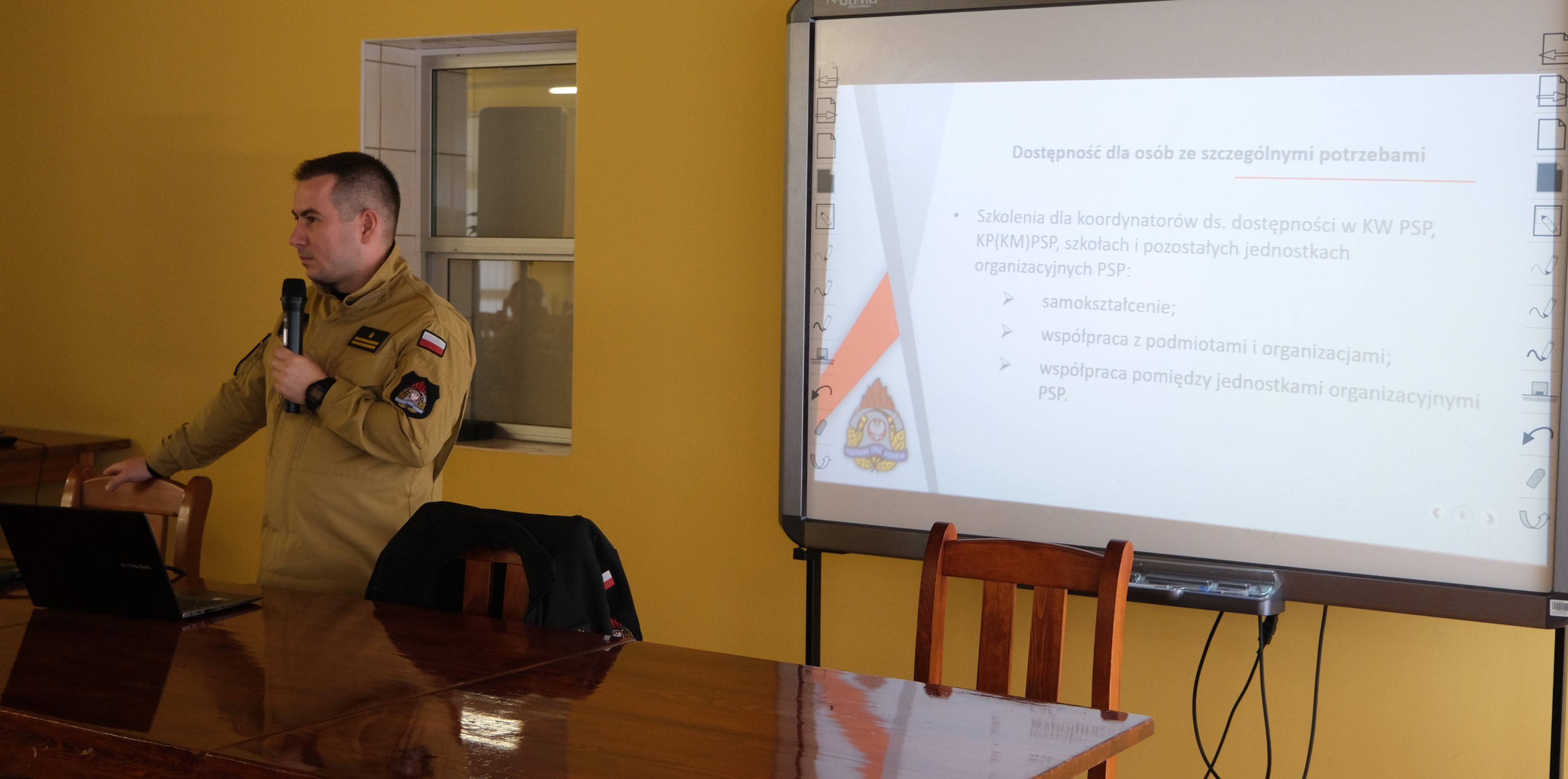 Podczas narady szkoleniowej, przedstawiciele Biura Komendanta Głównego oraz Biura Kadr Komendy Głównej PSP pod przewodnictwem dyrektorów Biur, st. bryg. Marka Piekutowskiego oraz st. bryg. Tomasza Zająca, przekazali uczestnikom informacje i omówili zagadnienia dotyczące między innymi: ceremoniału pożarniczego, roli prewencji społecznej, w tym realizowanych kampanii społecznych, precedencji, działalności informacyjnej w PSP, struktur organizacyjnych komend wojewódzkich i powiatowych / miejskich PSP oraz dostępności jednostek PSP dla osób ze szczególnymi potrzebami.