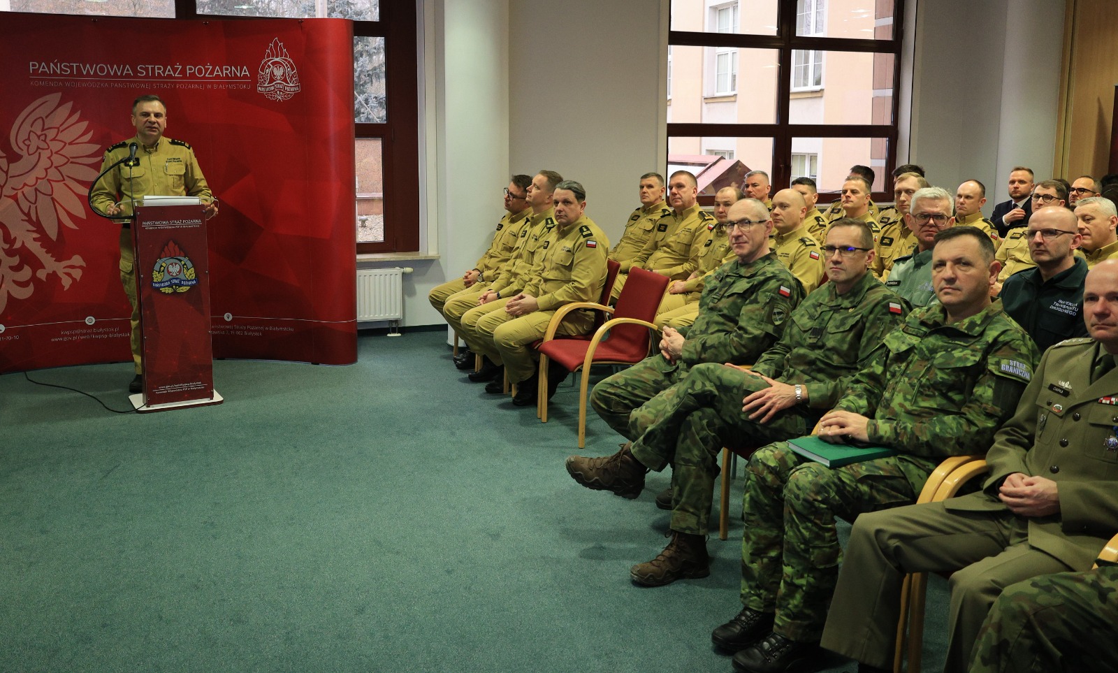 We wtorek 11 lutego 2025 roku w Sali Kolumnowej Podlaskiego Urzędu Wojewódzkiego odbyła się narada roczna kadry kierowniczej Państwowej Straży Pożarnej województwa podlaskiego.