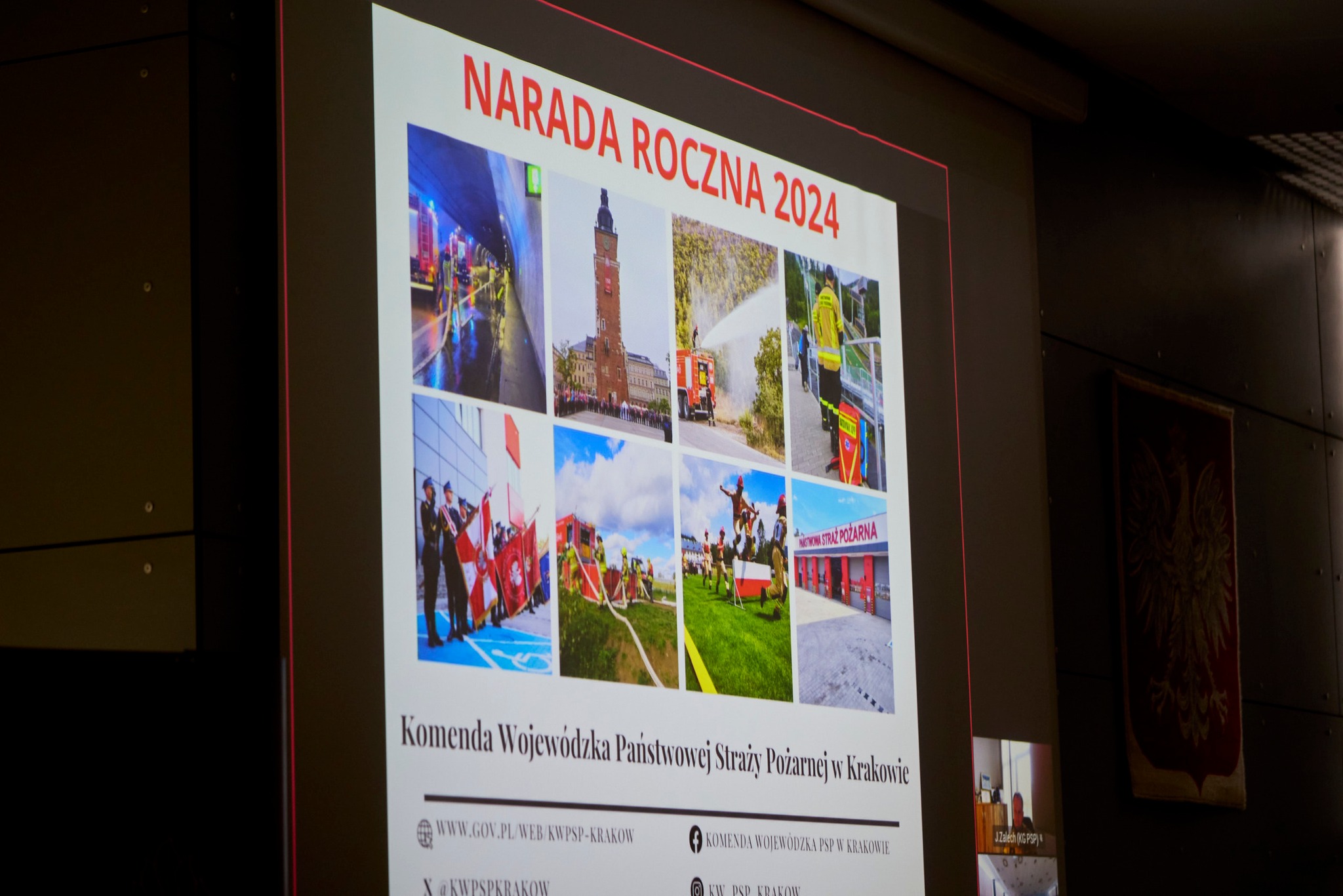 Podczas odprawy rocznej zaprezentowano realizację zadań związanych z funkcjonowaniem jednostek organizacyjnych PSP na terenie województwa małopolskiego wraz z planami i priorytetowymi celami na 2024 r.