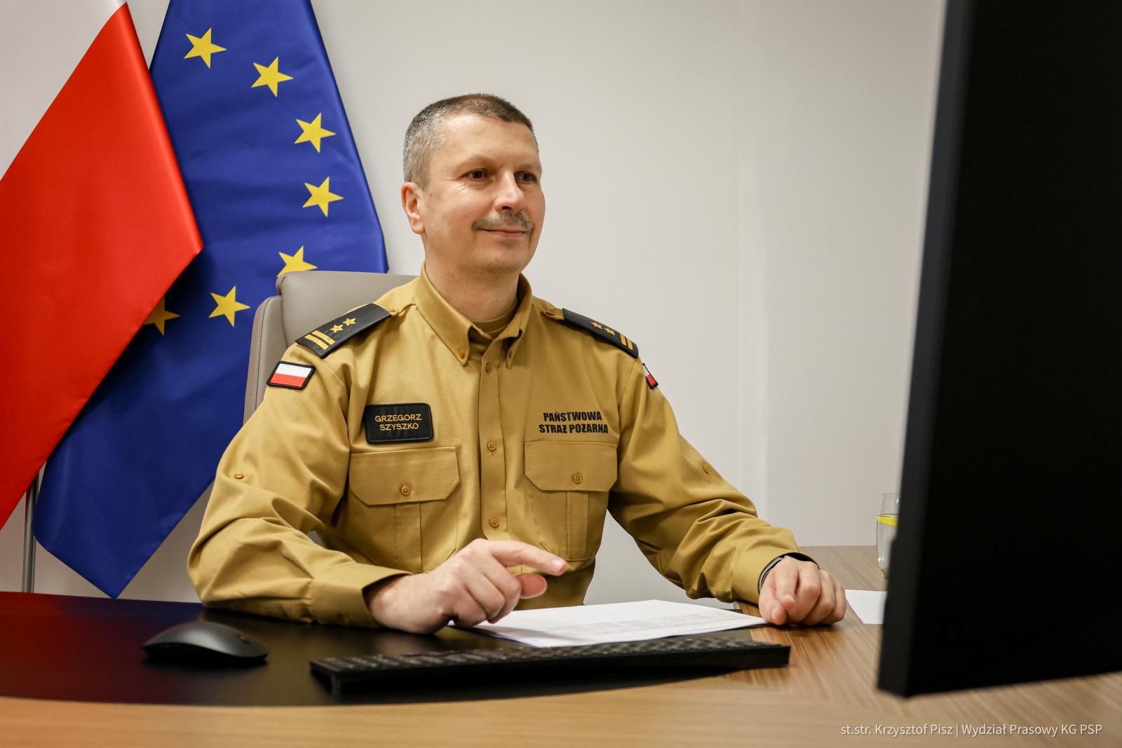 W trybie wideokonferencji, z małopolskimi strażakami, połączył się zastępca komendanta głównego PSP bryg. dr inż. Grzegorz Szyszko oraz dyrektorzy biur Komendy Głównej PSP. Zastępca komendanta głównego PSP podziękował małopolskim strażakom za zaangażowanie i poświęcenie w realizacji zadań służbowych oraz rozwój ochrony przeciwpożarowej na terenie województwa małopolskiego.