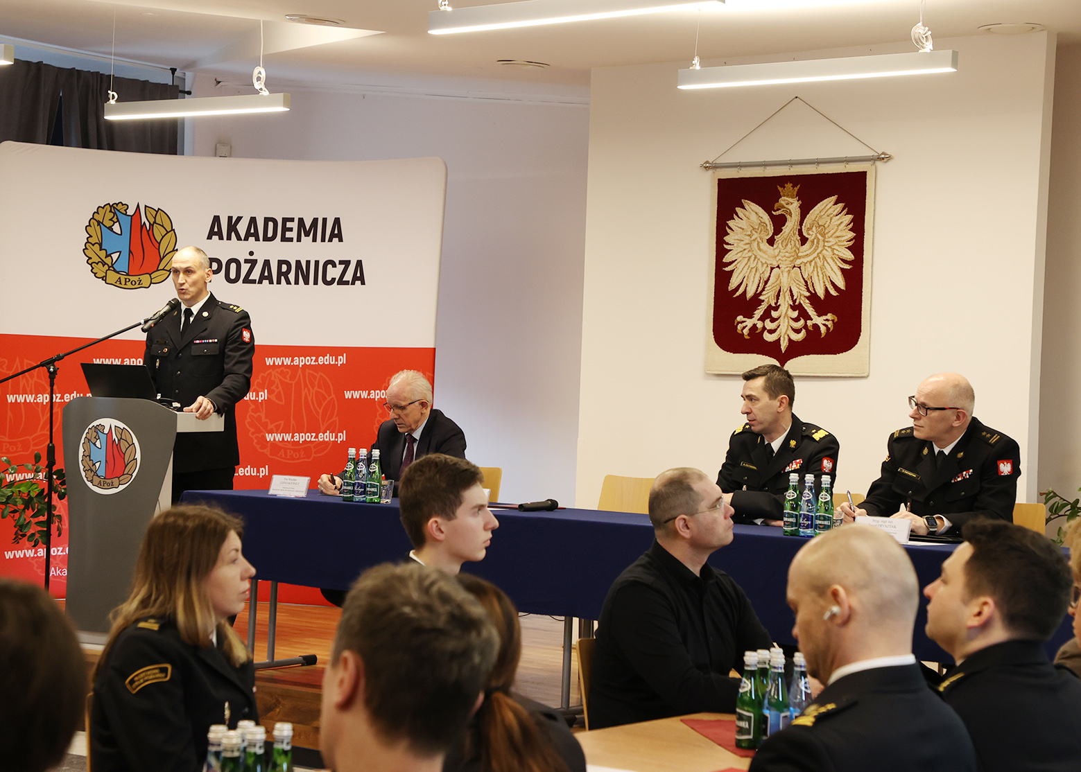 W spotkaniu wzięli udział m. in. : podsekretarz stanu w Ministerstwie Spraw Wewnętrznych i Administracji Wiesław Leśniakiewicz oraz komendant główny Państwowej Straży Pożarnej nadbryg. dr inż. Mariusz Feltynowski wraz z zastępcą nadzorującym Akademię Pożarniczą, bryg. Pawłem Frysztakiem oraz kadra uczelni.