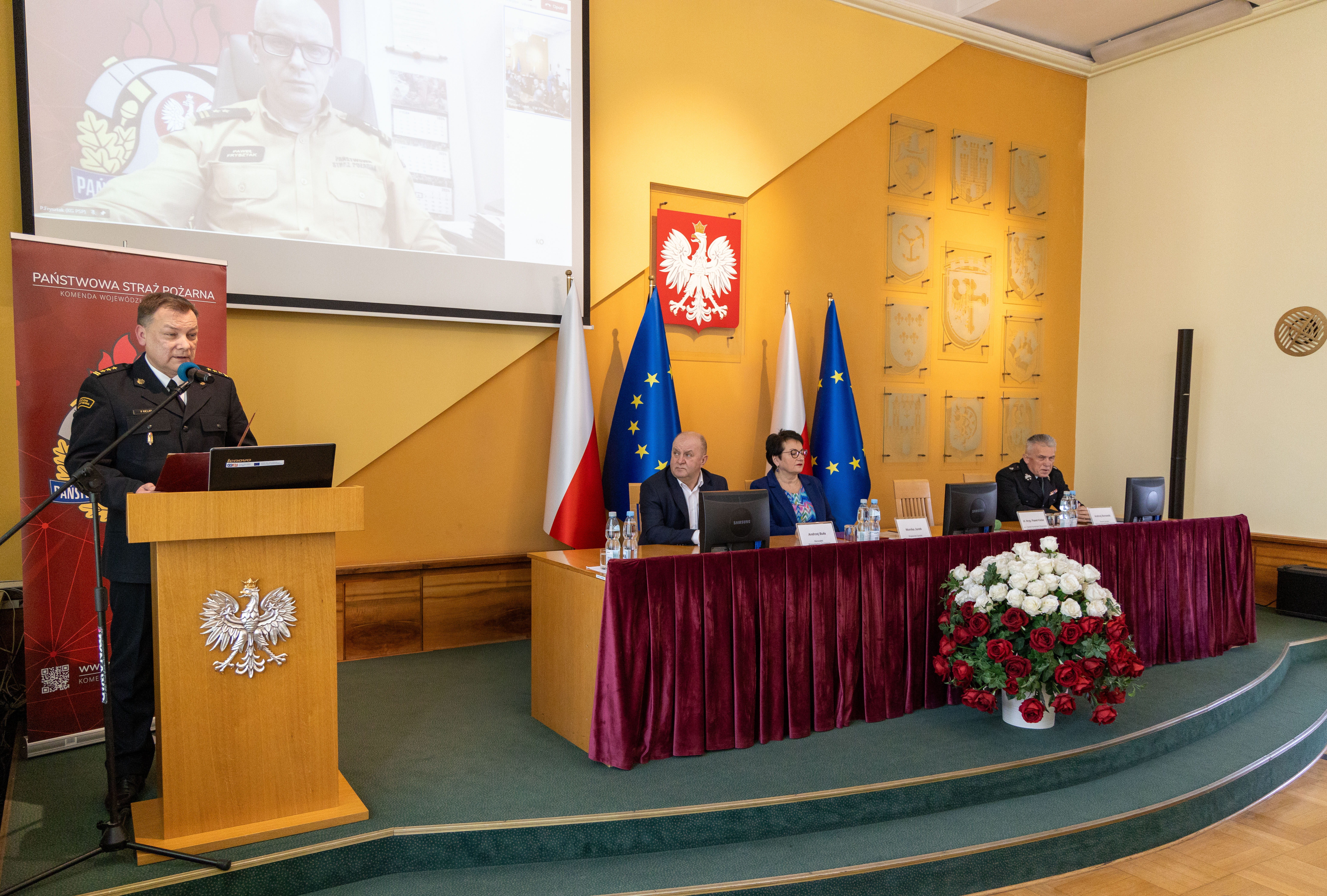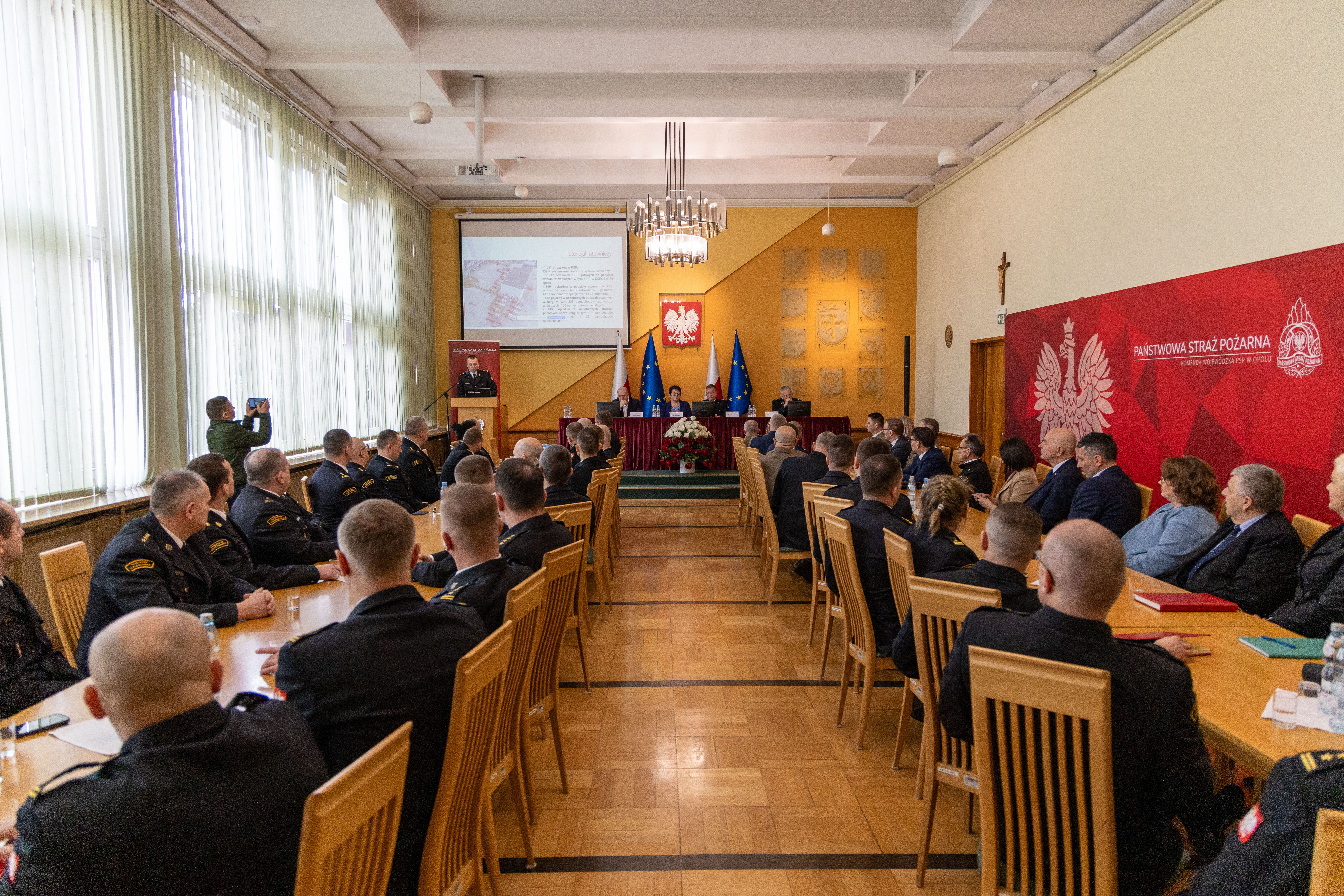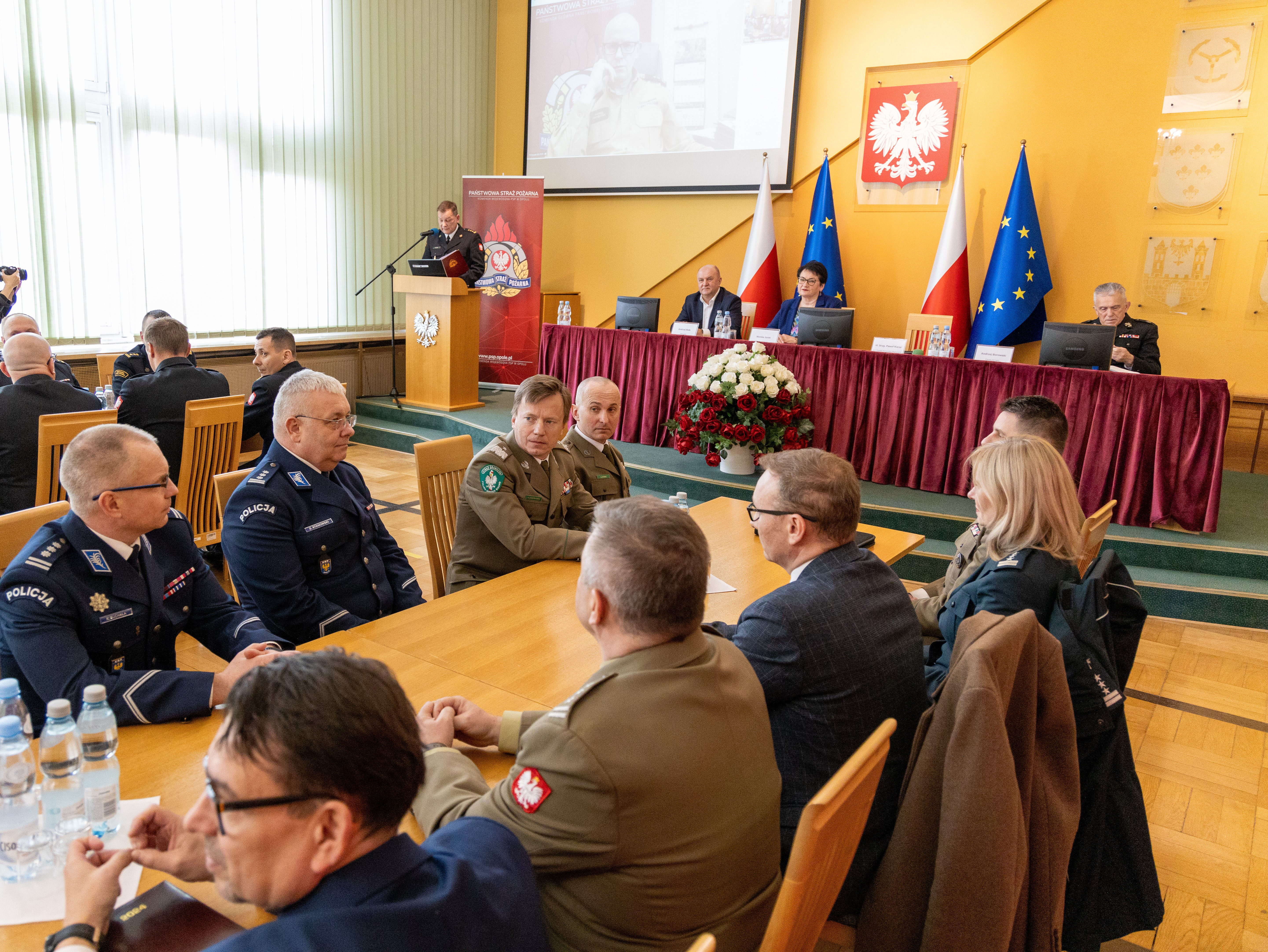 6 marca 2024 r. w Opolskim Urzędzie Wojewódzkim odbyła się narada roczna, podsumowująca działalność opolskich strażaków w 2023 roku. Z uczestnikami narady w trybie wideokonferencji połączył się zastępca komendanta głównego PSP bryg. Paweł Frysztak, który podziękował opolskim funkcjonariuszom i pracownikom cywilnym za dotychczasową służbę, zaangażowanie i poświęcenie w realizacji zadań służbowych oraz działań ratowniczo-gaśniczych, a jednocześnie przekazał główne kierunki i zadania zaplanowane do realizacji przez Państwową Straż Pożarną w 2024 roku.