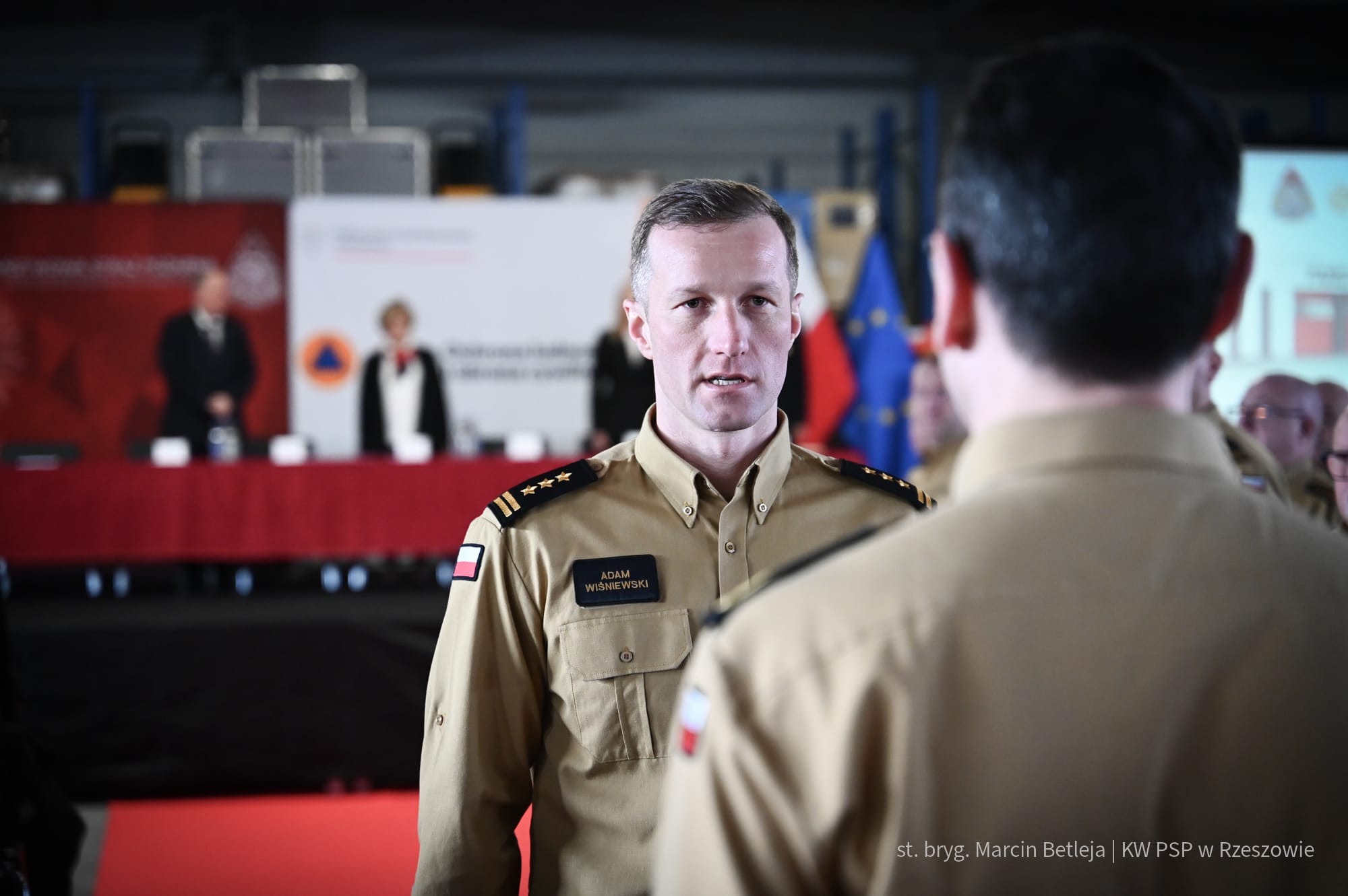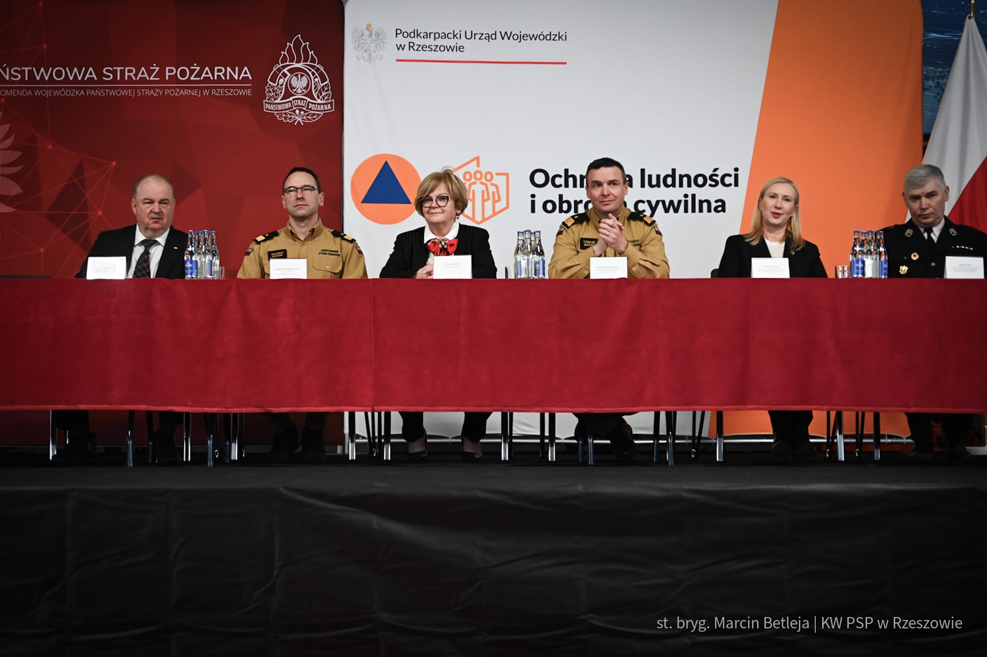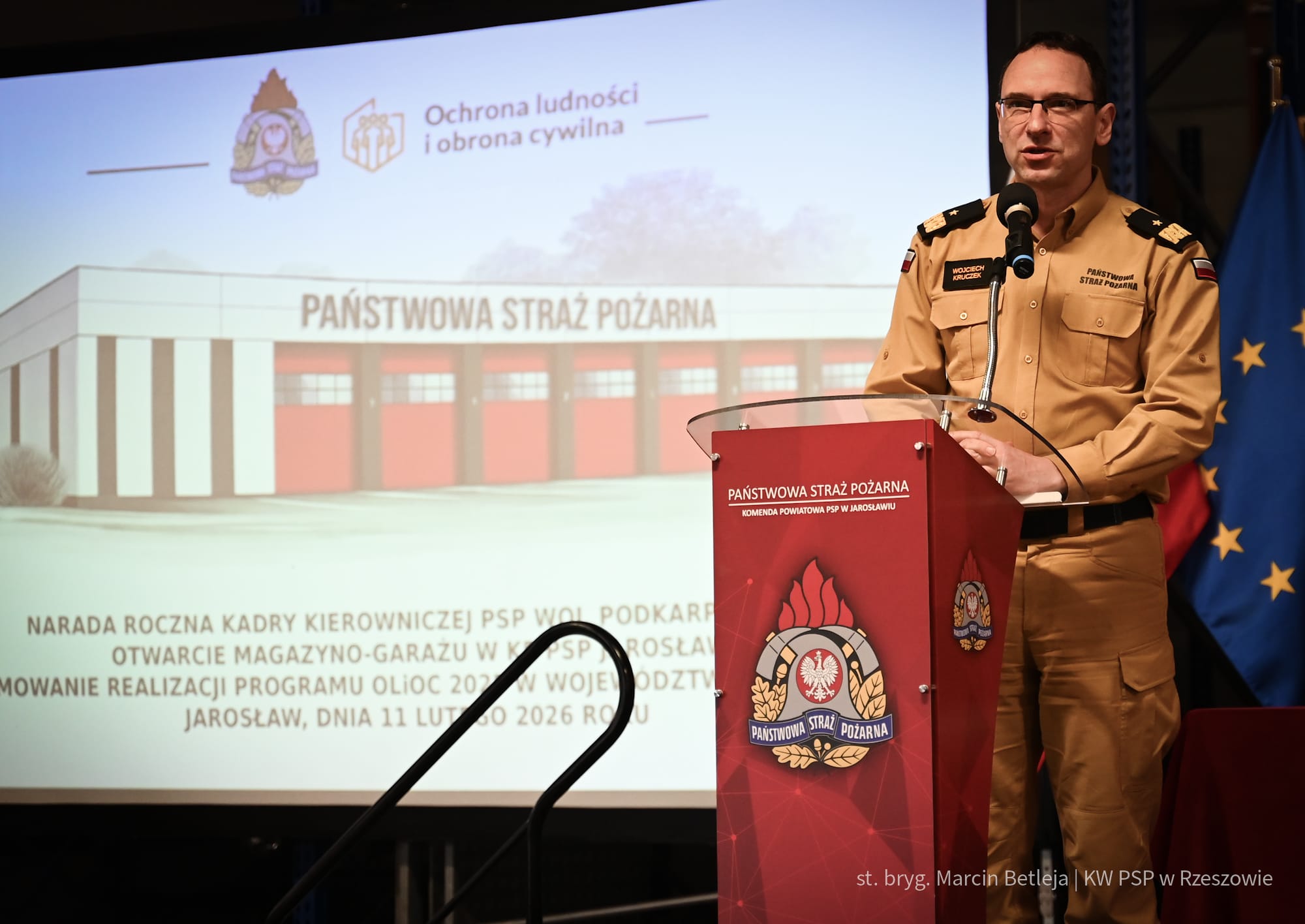 Ostatnim elementem wydarzenia była narada roczna. W jej trakcie podsumowano działalność operacyjną i organizacyjną podkarpackich strażaków w 2025 roku. Omówiono m.in. skalę prowadzonych interwencji, doświadczenia wyniesione z działań ratowniczych oraz priorytety na kolejne lata. Podkreślono znaczenie ciągłego doskonalenia systemu ochrony ludności oraz utrzymania wysokiego poziomu gotowości jednostek PSP i OSP na terenie województwa. Komendant główny PSP nadbryg. Wojciech Kruczek, podziękował podkarpackim strażakom za dotychczasową służbę, zaangażowanie i poświęcenie w realizacji zadań służbowych i działań ratowniczych. Jednocześnie przekazał główne kierunki i zadania zaplanowane do realizacji przez Państwowa Straż Pożarną w 2026 roku.