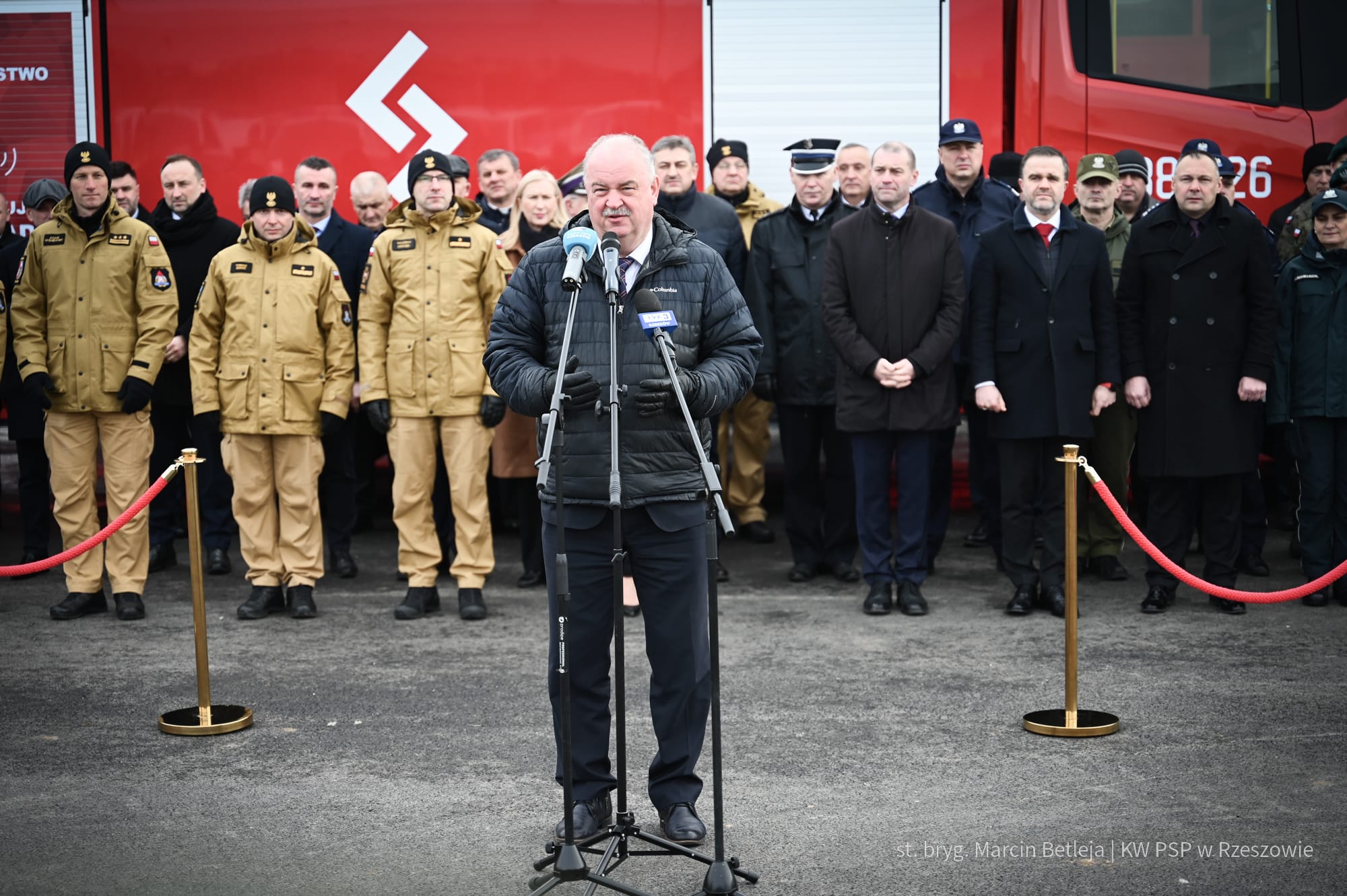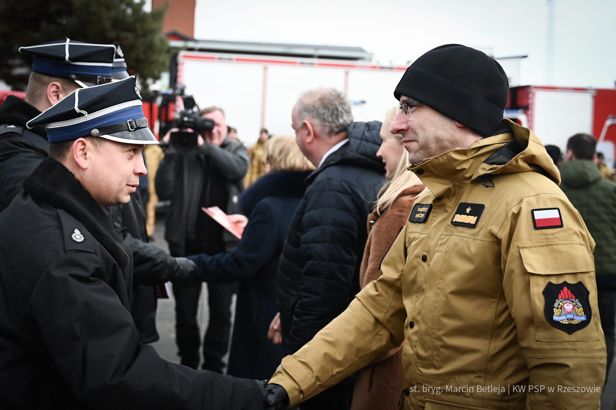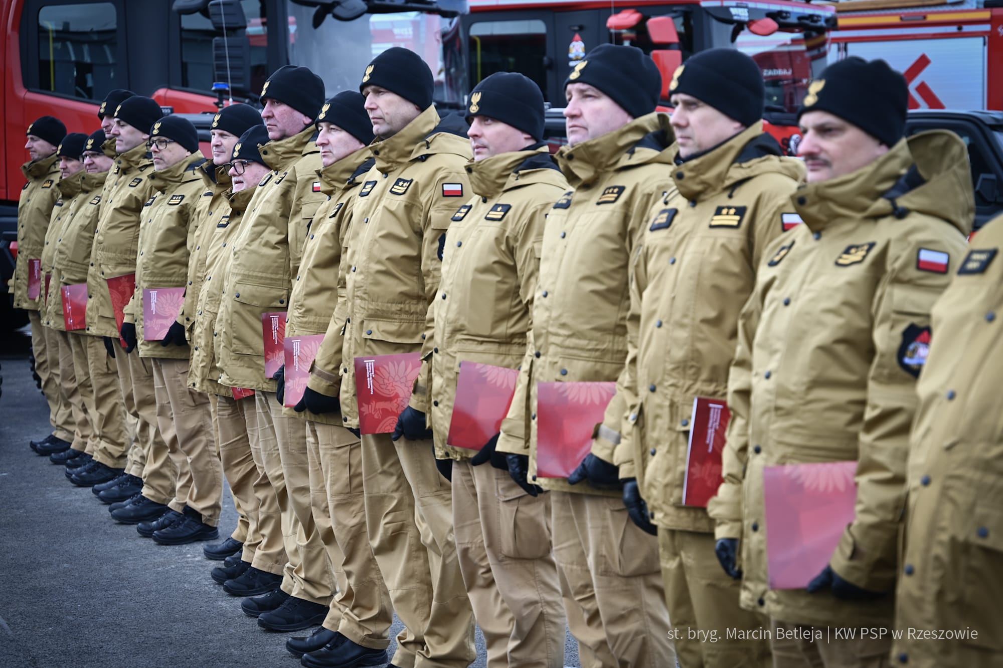 Ostatnim elementem wydarzenia była narada roczna. W jej trakcie podsumowano działalność operacyjną i organizacyjną podkarpackich strażaków w 2025 roku. Omówiono m.in. skalę prowadzonych interwencji, doświadczenia wyniesione z działań ratowniczych oraz priorytety na kolejne lata. Podkreślono znaczenie ciągłego doskonalenia systemu ochrony ludności oraz utrzymania wysokiego poziomu gotowości jednostek PSP i OSP na terenie województwa. Komendant główny PSP nadbryg. Wojciech Kruczek, podziękował podkarpackim strażakom za dotychczasową służbę, zaangażowanie i poświęcenie w realizacji zadań służbowych i działań ratowniczych. Jednocześnie przekazał główne kierunki i zadania zaplanowane do realizacji przez Państwowa Straż Pożarną w 2026 roku.