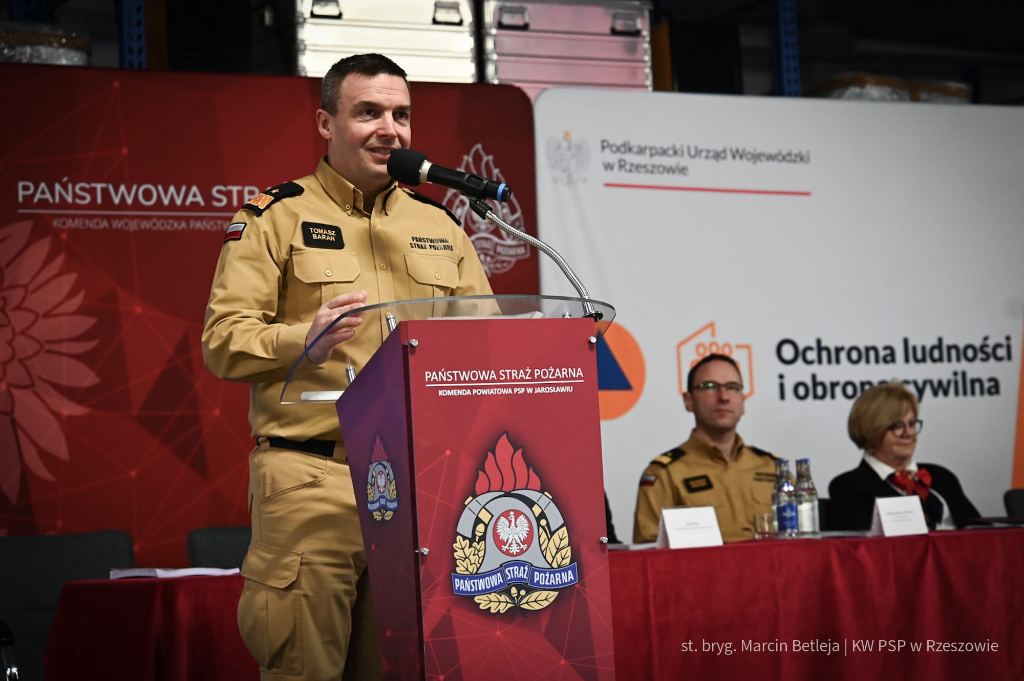W trakcie zbiórki przekazano jednostkom PSP województwa podkarpackiego sprzęt i pojazdy ratownicze, a następnie wręczono akty przekazania sprzętu przedstawicielom jednostek OSP. Istotnym punktem uroczystości było także symboliczne otwarcie nowej hali magazynowo-garażowej Komendy Powiatowej PSP w Jarosławiu. Obiekt ten ma istotne znaczenie dla zabezpieczenia logistycznego podkarpackiej PSP. Nowa hala jest jednym z elementów wzmacniających gotowość operacyjną w kontekście realizacji zadań z zakresu ochrony ludności i obrony cywilnej.