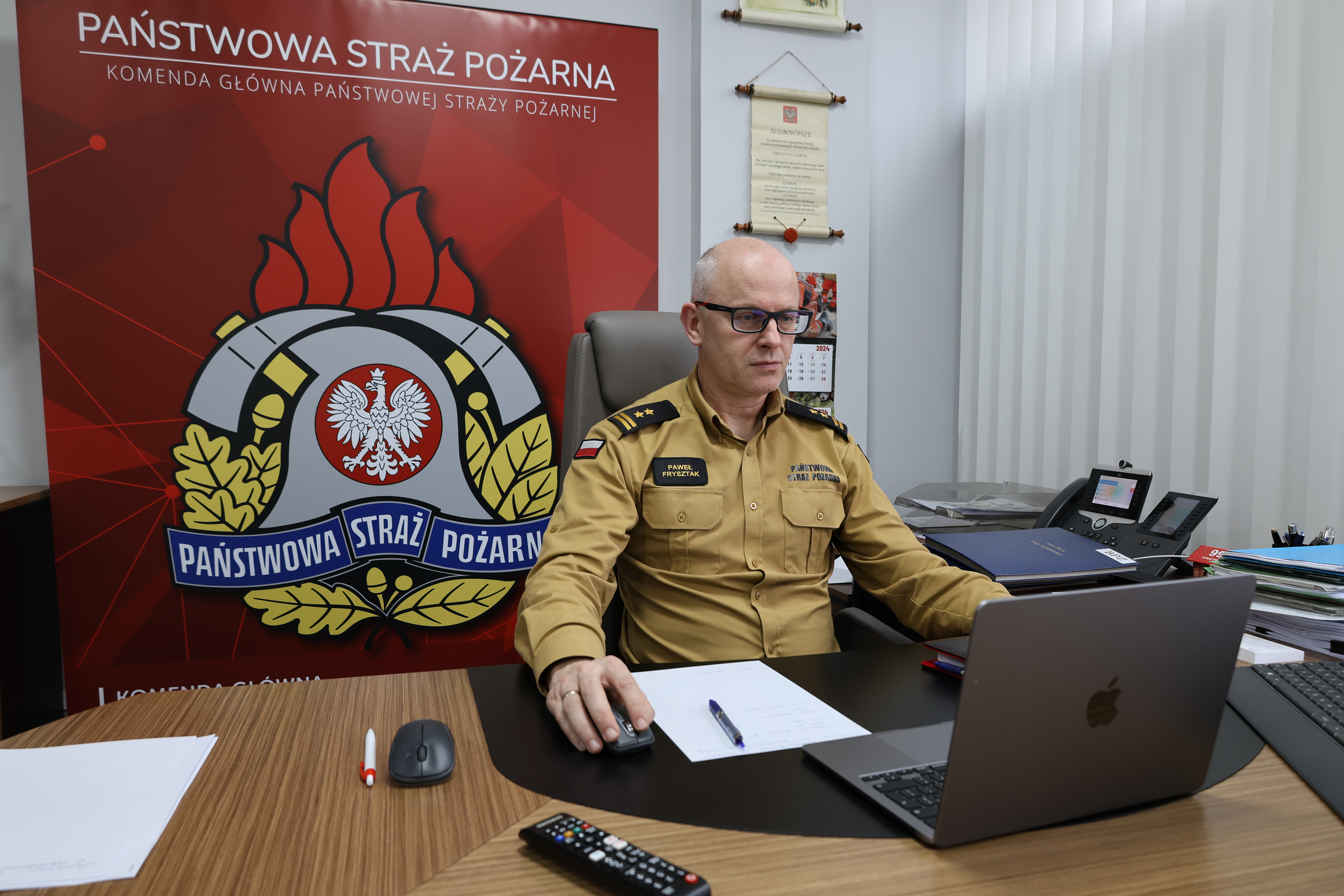 Z uczestnikami narady w trybie wideokonferencji połączył się zastępca komendanta głównego PSP bryg. Paweł Frysztak, który skierował do kadry Szkoły słowa podziękowań, podkreślając jednocześnie ich zasługi, potencjał i zaangażowanie w zakresie dydaktyki, w tym także w działalności szkoleniowej i operacyjnej Jednostki Ratowniczo-Gaśniczej.