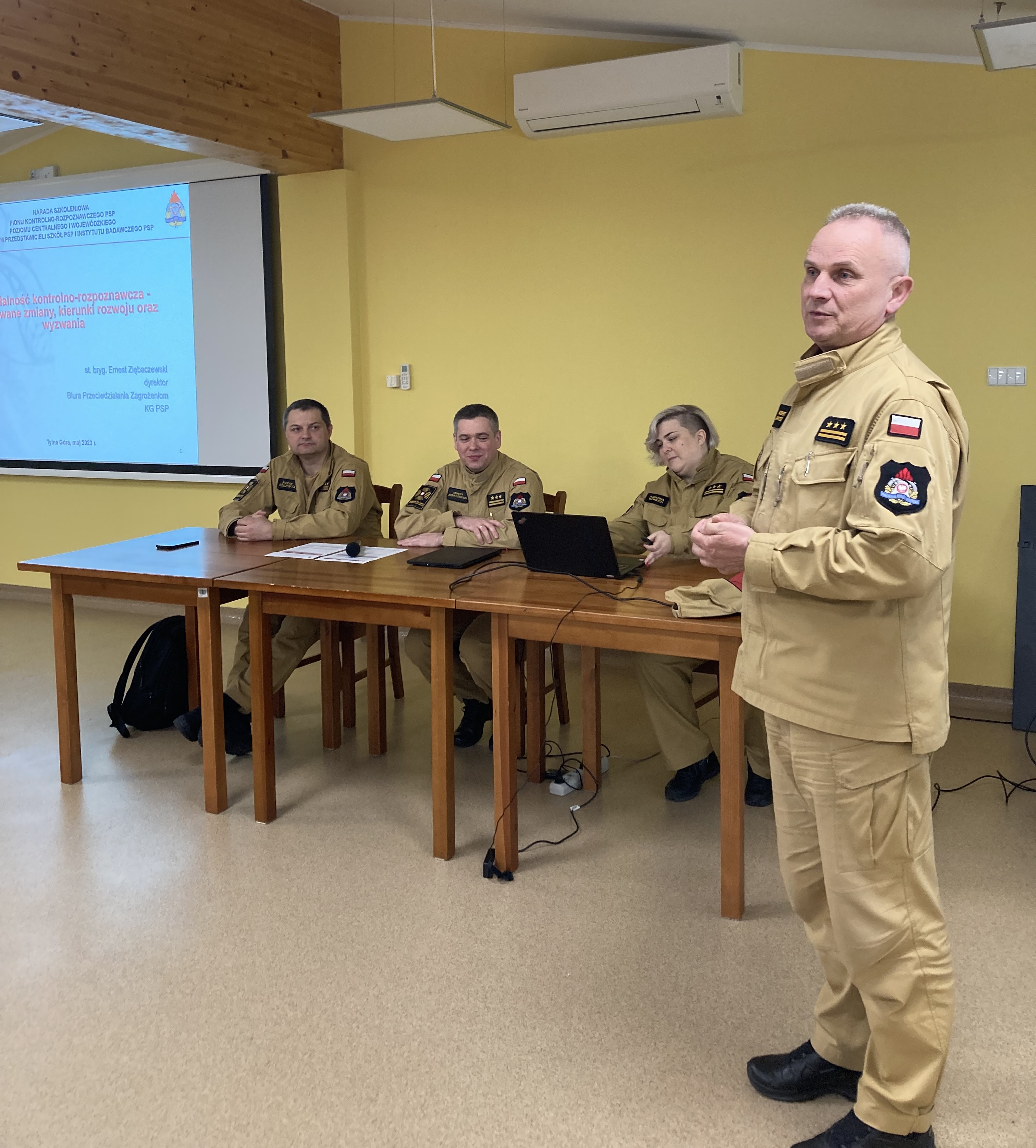 W dniach 10 - 11 maja 2023 r. w Ośrodku Szkoleniowym w Tylnej Górze Szkoły Podoficerskiej PSP w Bydgoszczy zorganizowano naradę szkoleniową pionu kontrolno-rozpoznawczego PSP z udziałem przedstawicieli Komendy Głównej PSP, komend wojewódzkich PSP i szkół PSP oraz Centrum Naukowo Badawczego PIB.