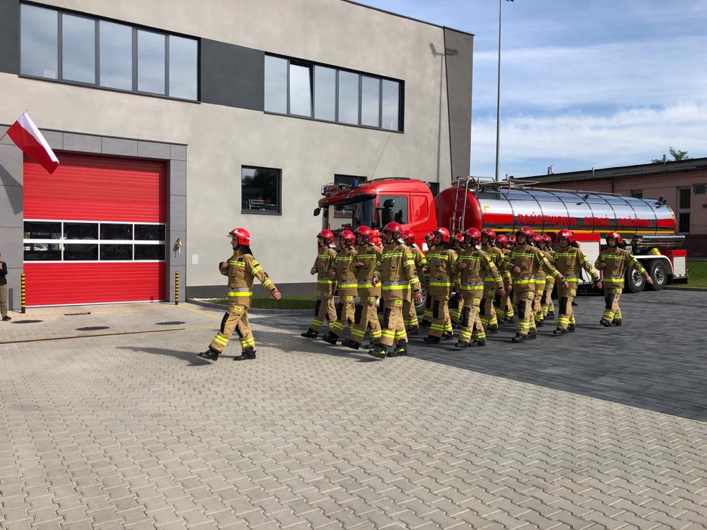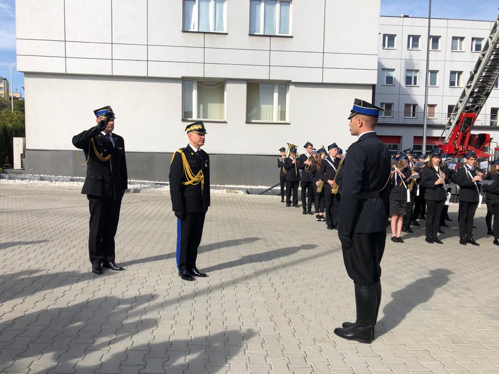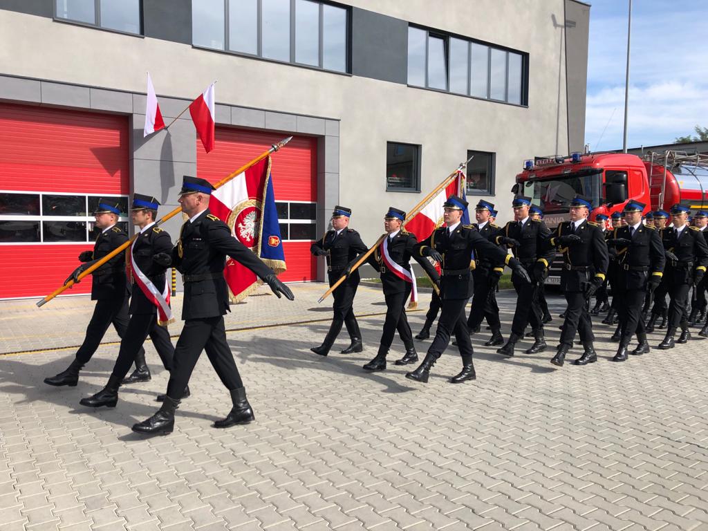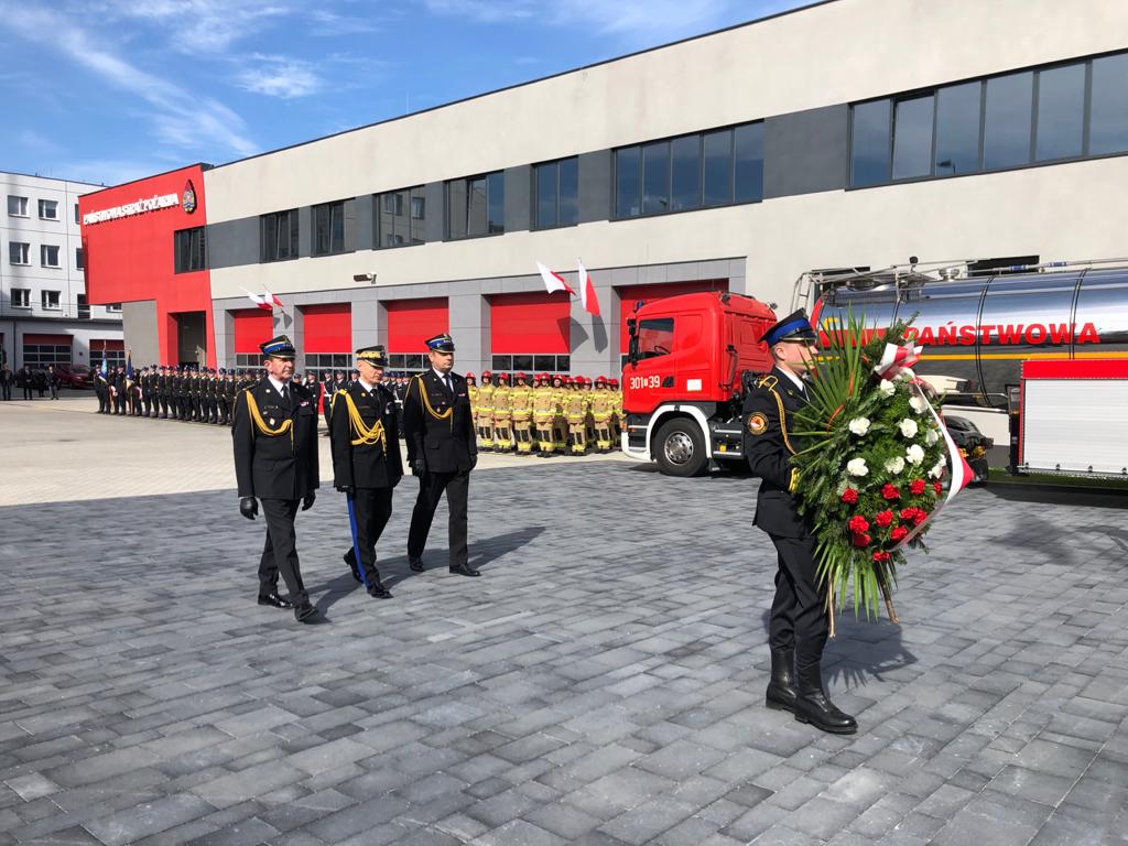 Na tę okoliczność na placu nowej Jednostki zorganizowano uroczysty apel, który rozpoczęto tradycyjnie złożeniem meldunku Komendantowi Głównemu PSP, przeglądem pododdziałów oraz podniesieniem flagi RP na maszt przy dźwiękach hymnu państwowego.