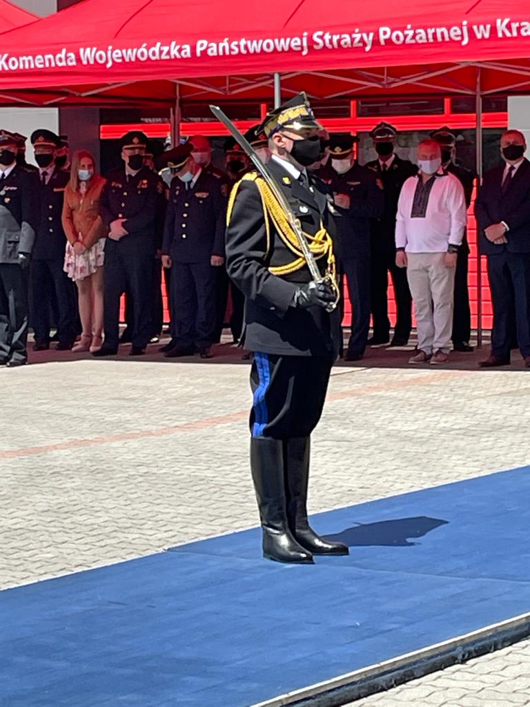 W uroczystości udział wzięli m. in.: zastępca komendanta głównego Państwowej Straży Pożarnej - nadbryg. Adam Konieczny, wojewoda małopolski - Łukasz Kmita, małopolski komendant wojewódzki PSP – st. bryg. Piotr Filipek wraz z zastępcami – bryg. Piotrem Słowiakiem oraz mł. bryg. Przemysławem Przęczkiem, komendant Szkoły Aspirantów PSP w Krakowie – mł. bryg. Marek Chwała, wiceprezes ZOW ZOSP RP woj. małopolskiego - Adam Domagała, konsul generalny Ukrainy w Krakowie - Wiaczesław Wojnarowśkyj, przedstawiciele Państwowej Służby Ukrainy ds. Sytuacji Nadzwyczajnych, wicemarszałek województwa Małopolskiego - Łukasz Smółka, byli komendanci wojewódzcy PSP woj. małopolskiego, kadra Komendy Wojewódzkiej PSP w Krakowie oraz wyróżnieni strażacy PSP.