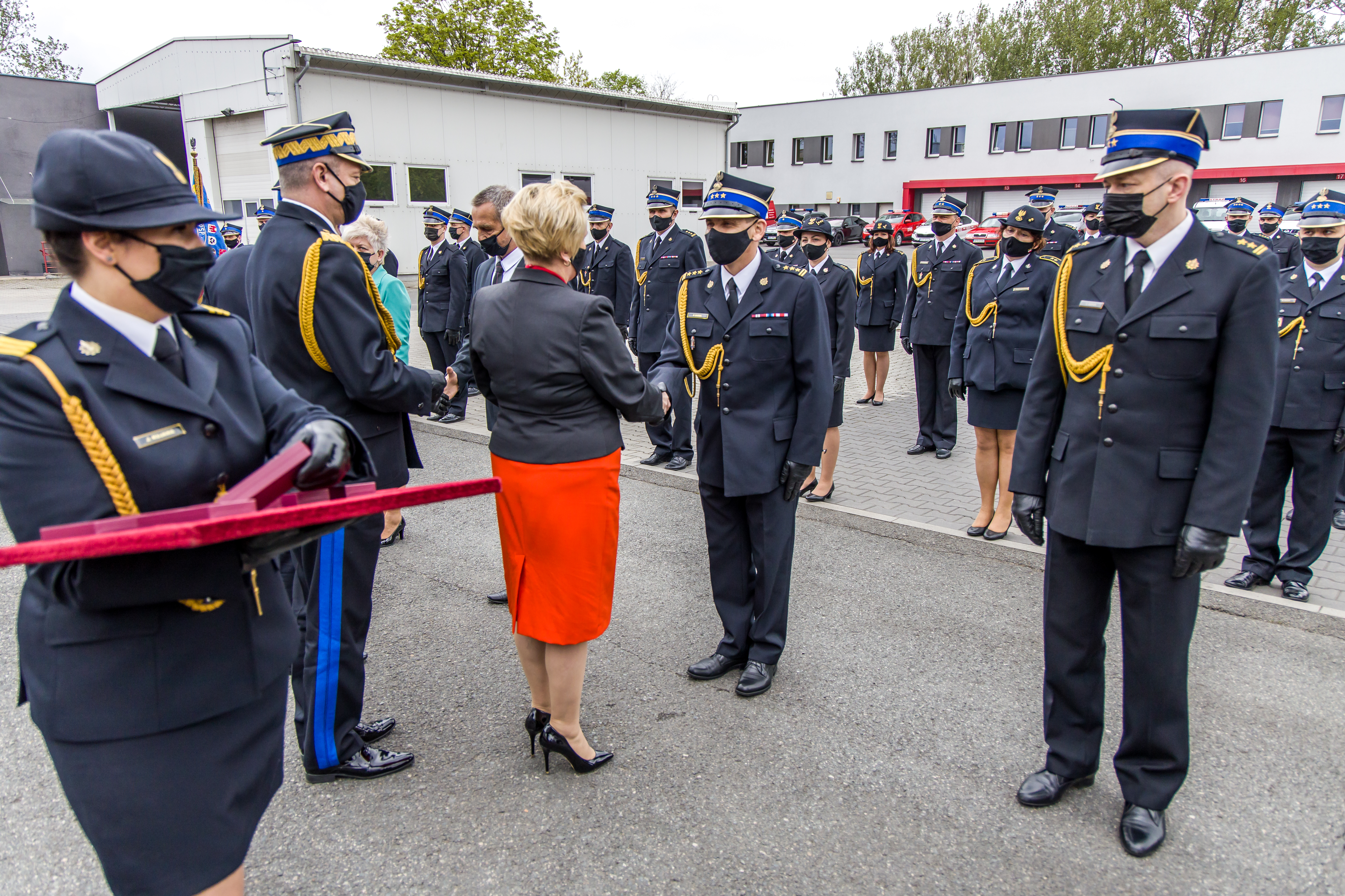 O godzinie 11:00 rozpoczęły się uroczystości na placu wewnętrznym komendy. Wśród zaproszonych gości byli obecni: Pani Poseł na Sejm RP Violetta Porowska, nadbryg. Arkadiusz Przybyła Zastępca Komendanta Głównego PSP, Pani Teresa Barańska Wicewojewoda Opolski, Pan dh Andrzej Borowski Prezes Zarządu Oddziału Wojewódzkiego Związku Ochotniczych Straży Pożarnych RP w Opolu, Pani Barbara Kamińska Dyrektor Dialogu i Partnerstwa Obywatelskiego Urzędu Marszałkowskiego Województwa Opolskiego, płk Dariusz Kaminiów Szef Wojewódzkiego Sztabu Wojskowego w Opolu, insp. Adam Tychowicz I Zastępca Komendanta Wojewódzkiego Policji w Opolu, Pani Barbara Lesik Kierownik Obsługi Przedsięwzięć Ochrony Środowiska z Wojewódzkiego Funduszu Ochrony Środowiska i Gospodarki Wodnej w Opolu, ks. Tomasz Józkowicz Kapelan Opolskich Strażaków oraz komendanci powiatowi i miejski PSP województwa opolskiego.