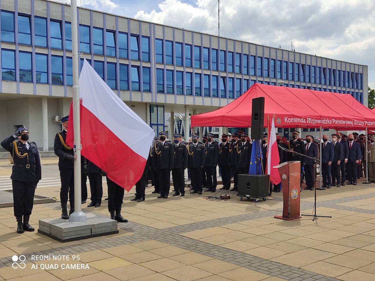 Następnie, na Placu Chopina w Puławach, odbył się uroczysty apel, który rozpoczęto złożeniem meldunku Zastępcy Komendanta Głównego PSP, po czym nastąpiło podniesienie flagi państwowej i odegranie hymnu państwowego.