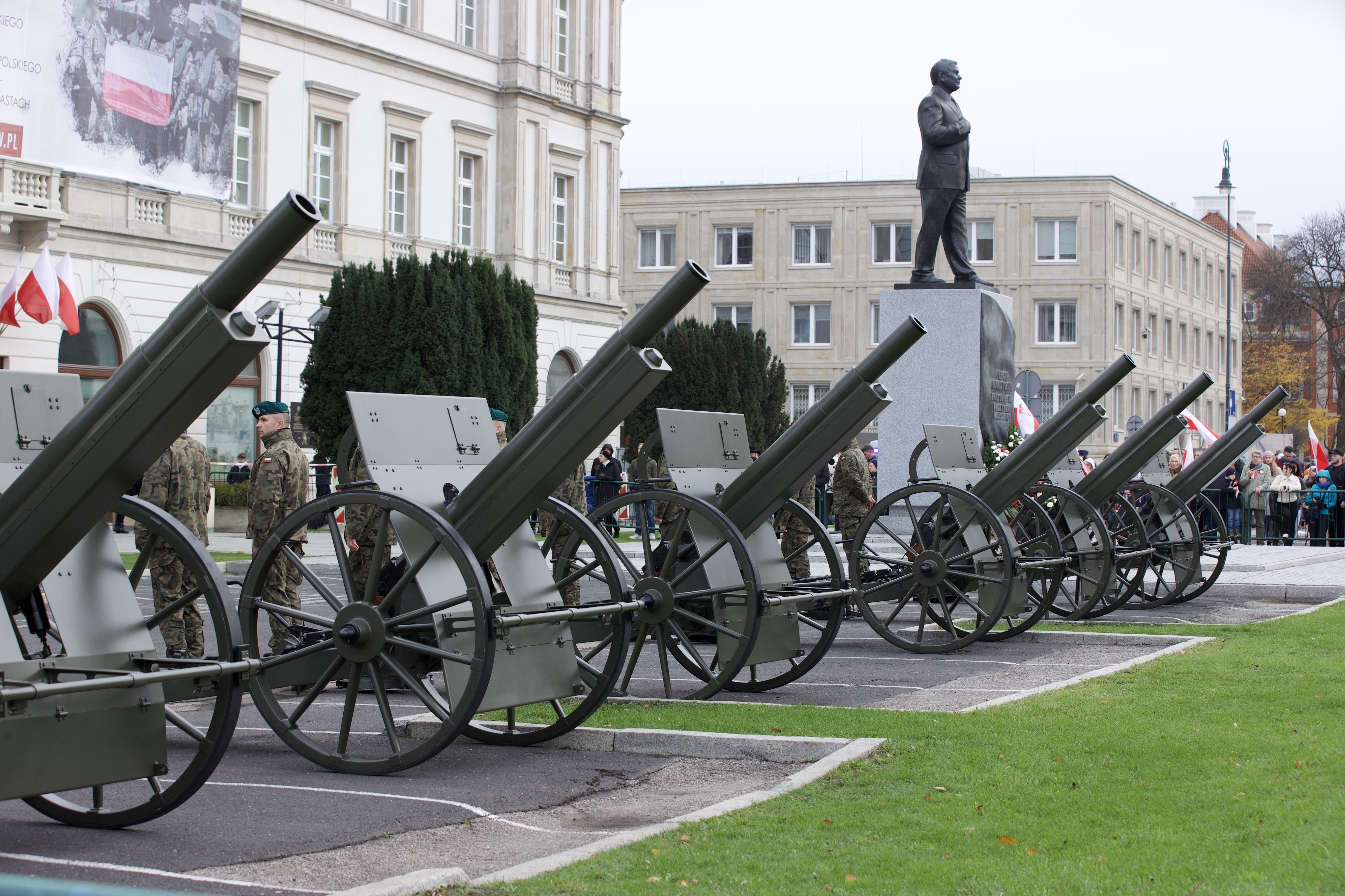 W samo południe na Placu Marszałka Józefa Piłsudskiego rozpoczęły się główne uroczystości związane ze świętem. Przed Grobem Nieznanego Żołnierza została podniesiona na maszt flaga państwowa,