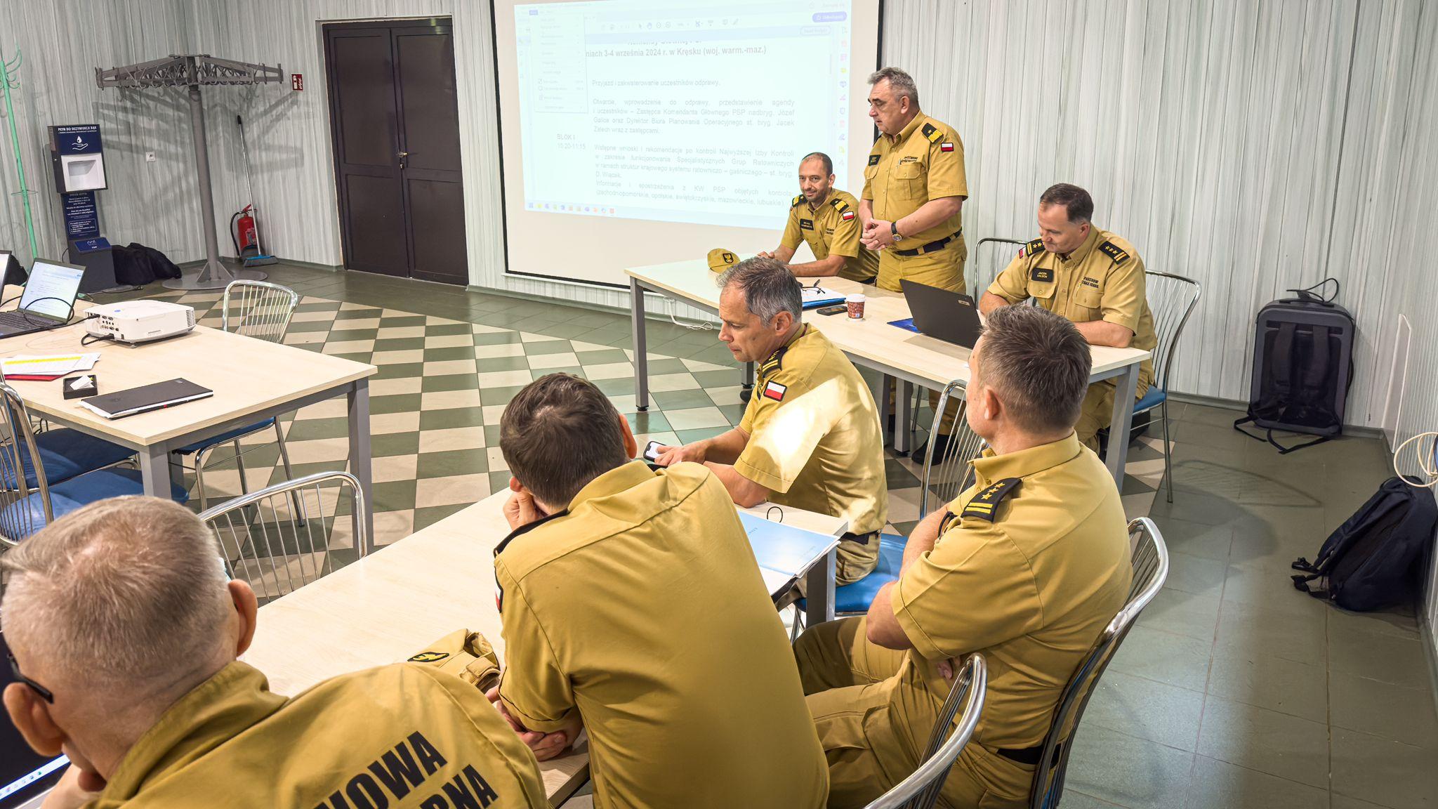 W dniach 3-4 września 2024 r. w bazie Poligonu Szkoleniowego w Kręsku Komendy Wojewódzkiej PSP w Warszawie, Biuro Planowania Operacyjnego Komendy Głównej PSP zorganizowało i przeprowadziło odprawę operacyjną dla zastępców komendantów wojewódzkich PSP ds. operacyjnych oraz naczelników wydziałów operacyjnych KW PSP, przedstawicieli szkół PSP.