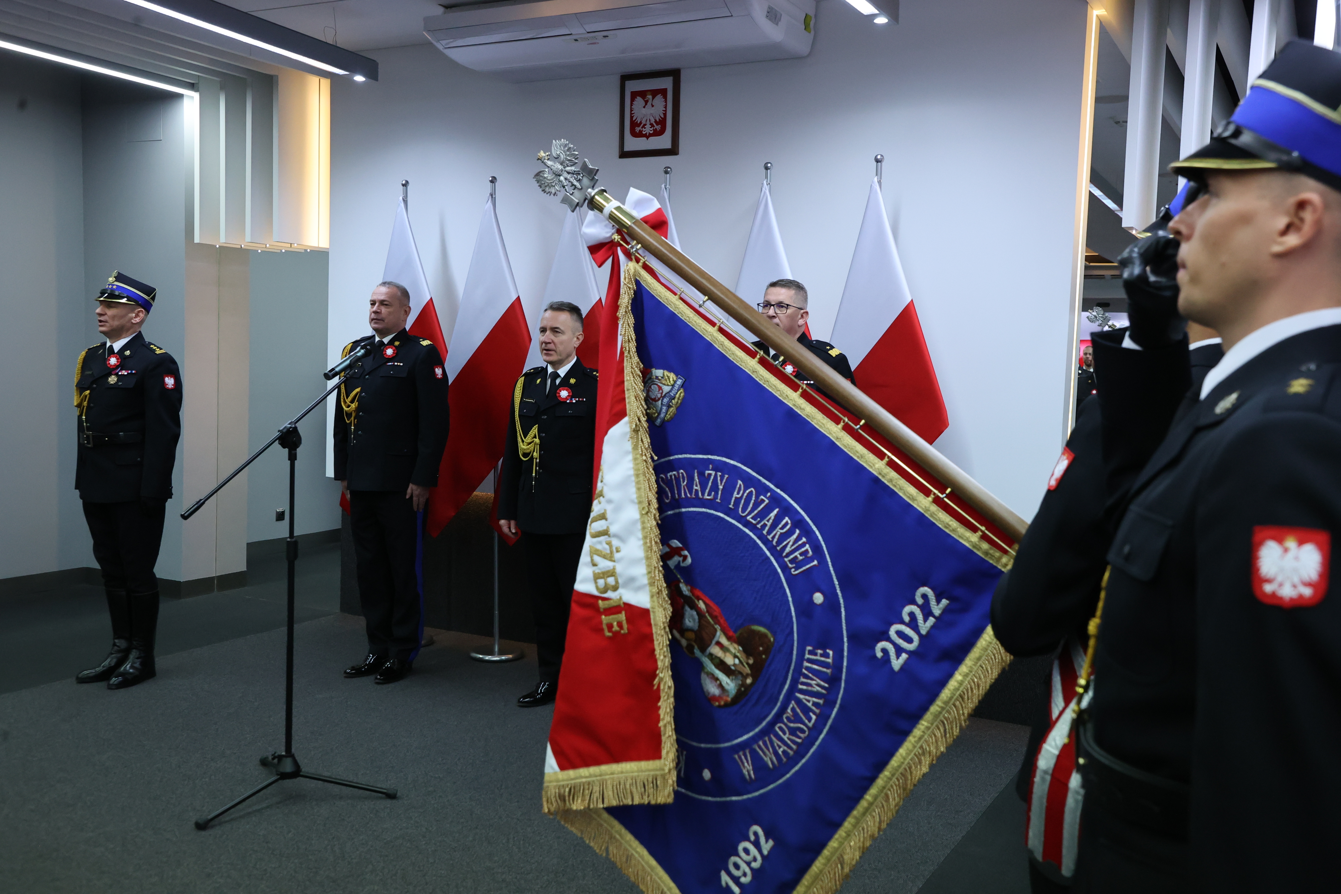 W poniedziałek 14 listopada 2022 r. w Komendzie Głównej PSP odbyła się uroczysta zbiórka z okazji Narodowego Święta Niepodległości. Komendant główny PSP gen. brygadier Andrzej Bartkowiak wraz z zastępcami, podczas apelu wręczył funkcjonariuszom i pracownikom cywilnym Komendy, odznaczenia i wyróżnienia oraz awanse na wyższy stopień służbowy.