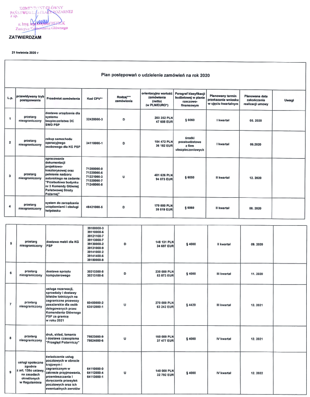 | 2020 (plan postępowań o udzielenie zamówień) | 2.0 | 19.04.2024 12:10 Maciej Pożarski |