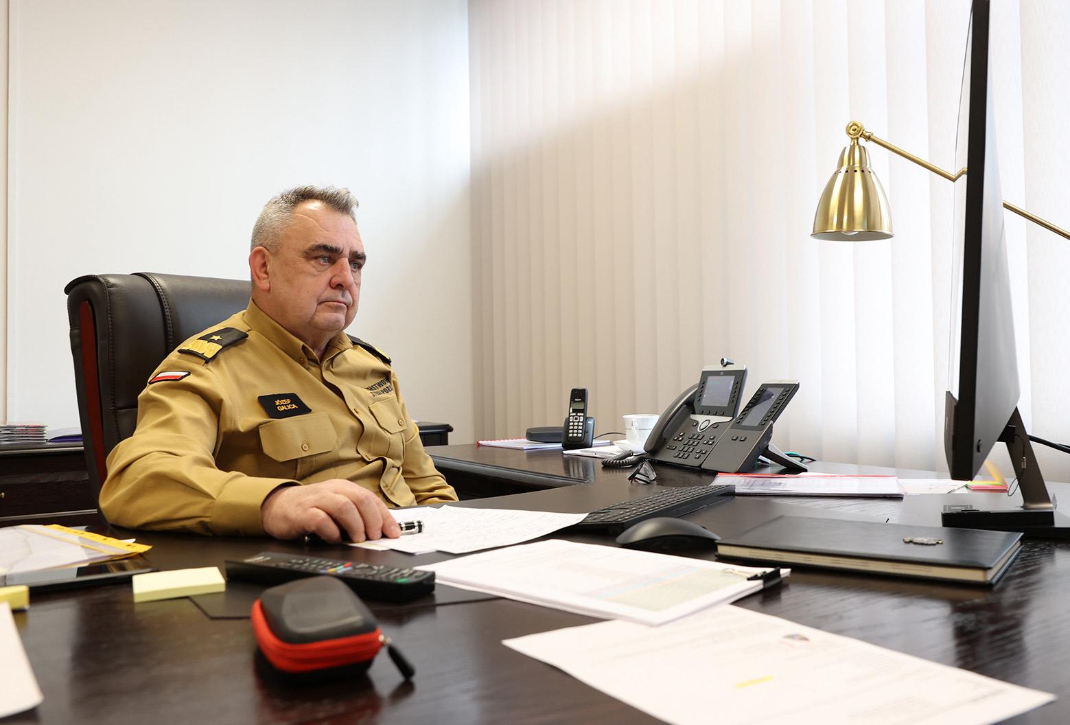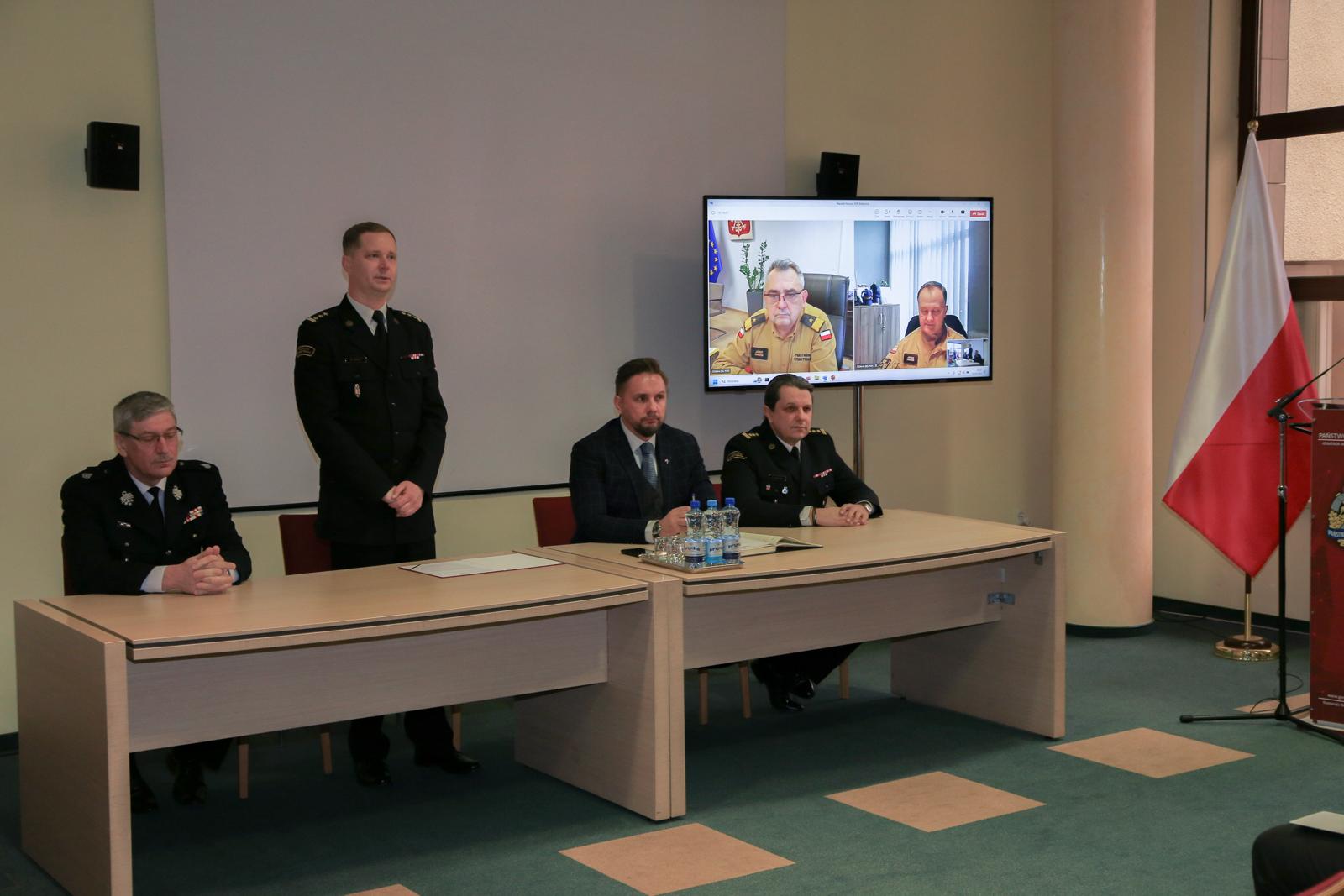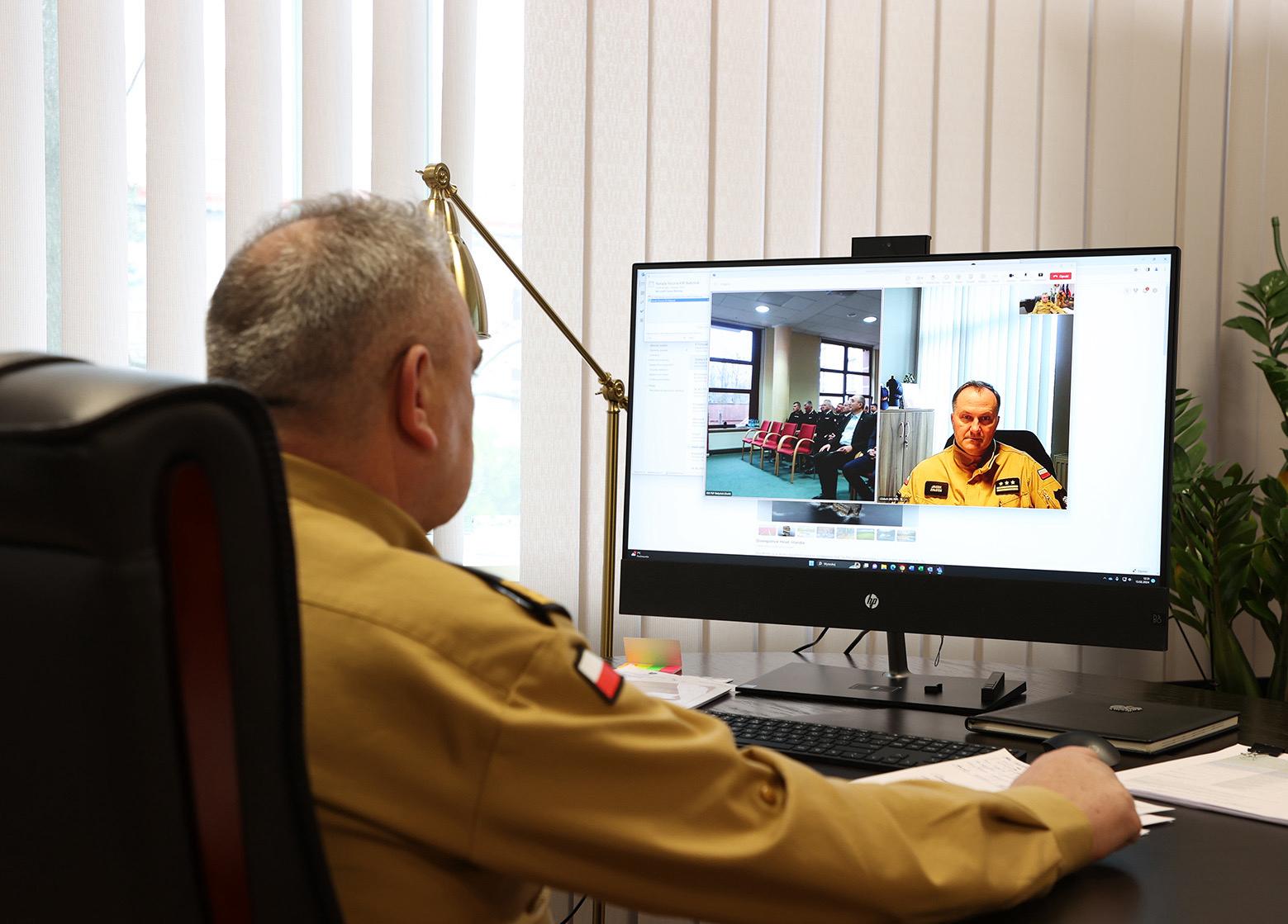 W trybie wideokonferencji, ze strażakami, połączył się zastępca komendanta głównego PSP nadbryg. Józef Galica oraz dyrektorzy biur Komendy Głównej PSP.