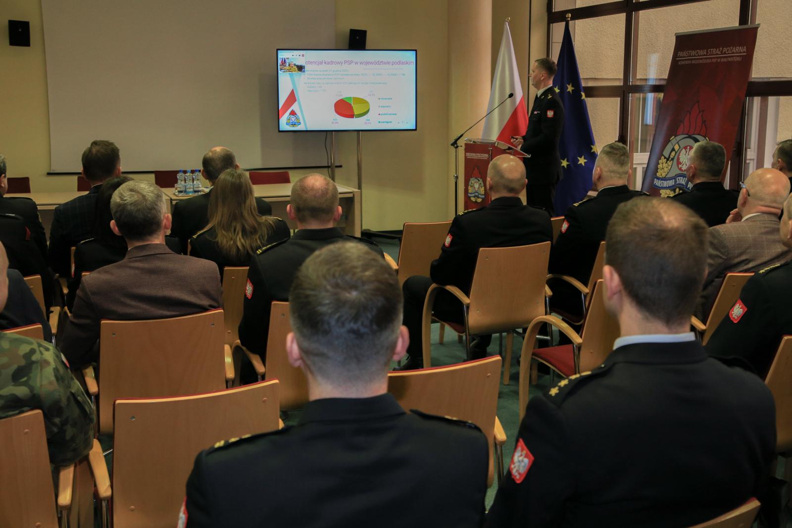 We wtorek 13 lutego 2024 roku w Komendzie Wojewódzkiej Państwowej Straży Pożarnej w Białymstoku odbyła się narada roczna, podsumowująca działalność podlaskich strażaków w 2023 roku.