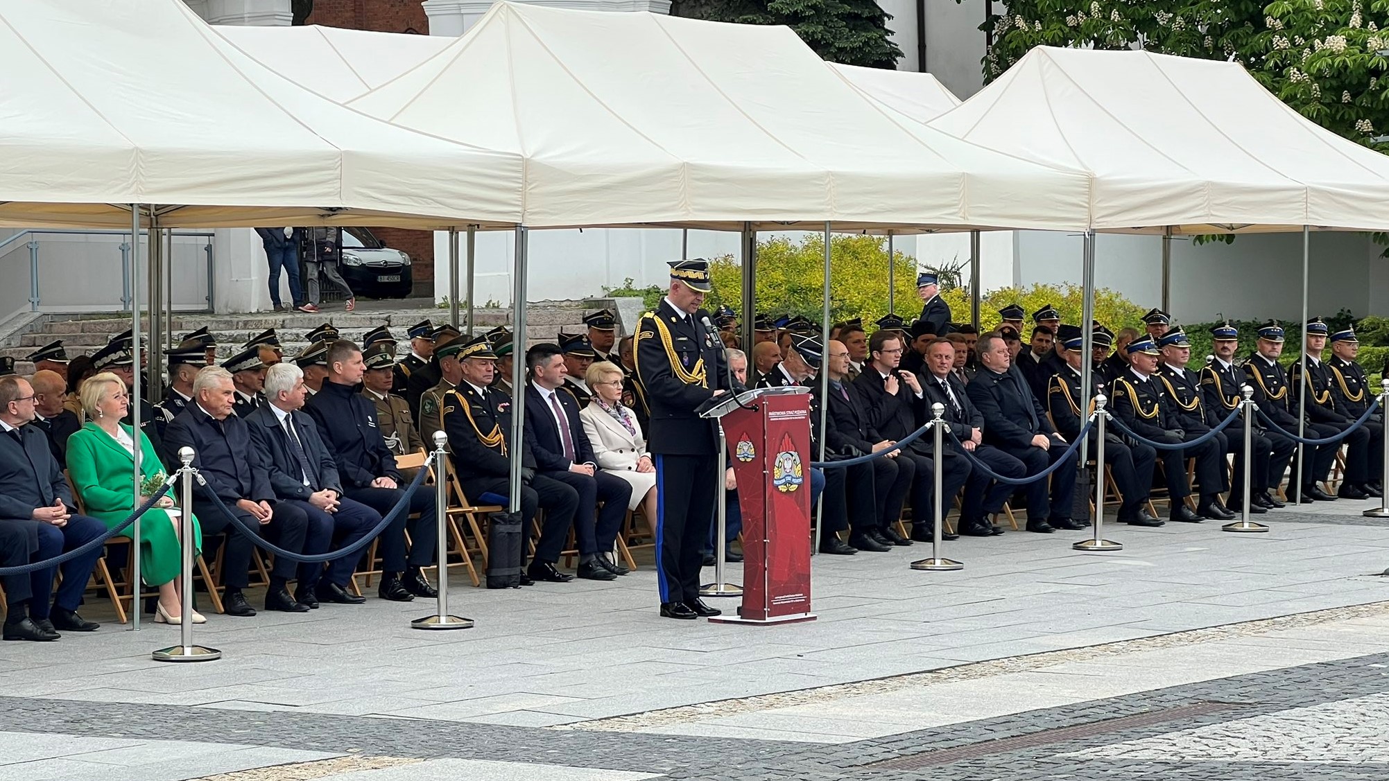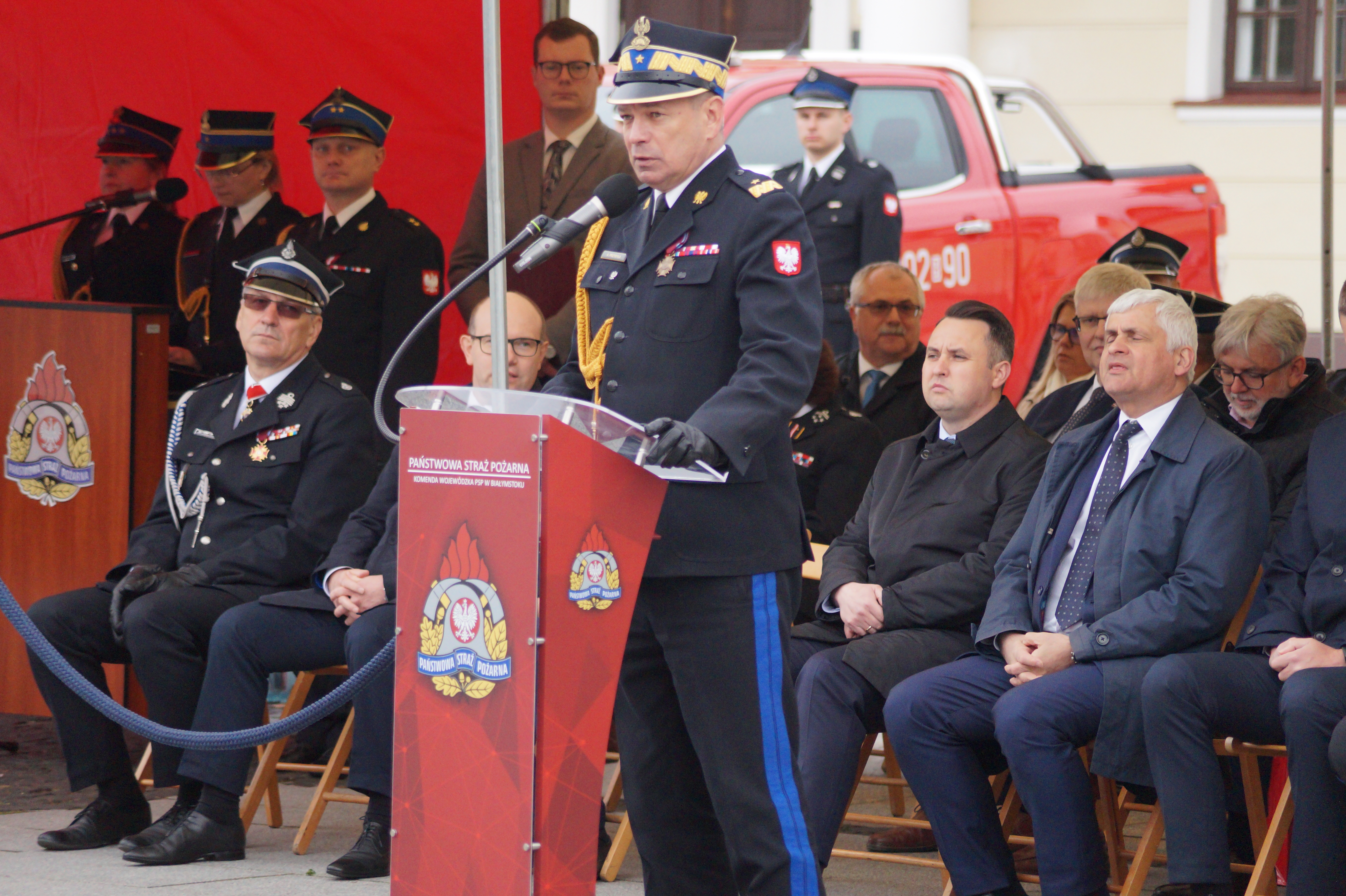 Podczas okolicznościowych przemówień głos zabrał m. in. nadbryg. Arkadiusz Przybyła zastępca komendanta głównego PSP, który pogratulował odznaczonym i awansowanym, a także podziękował podlaskim strażakom za codzienną służbę oraz zaangażowanie i poświęcenie w ratowaniu życia i zdrowia ludzkiego.