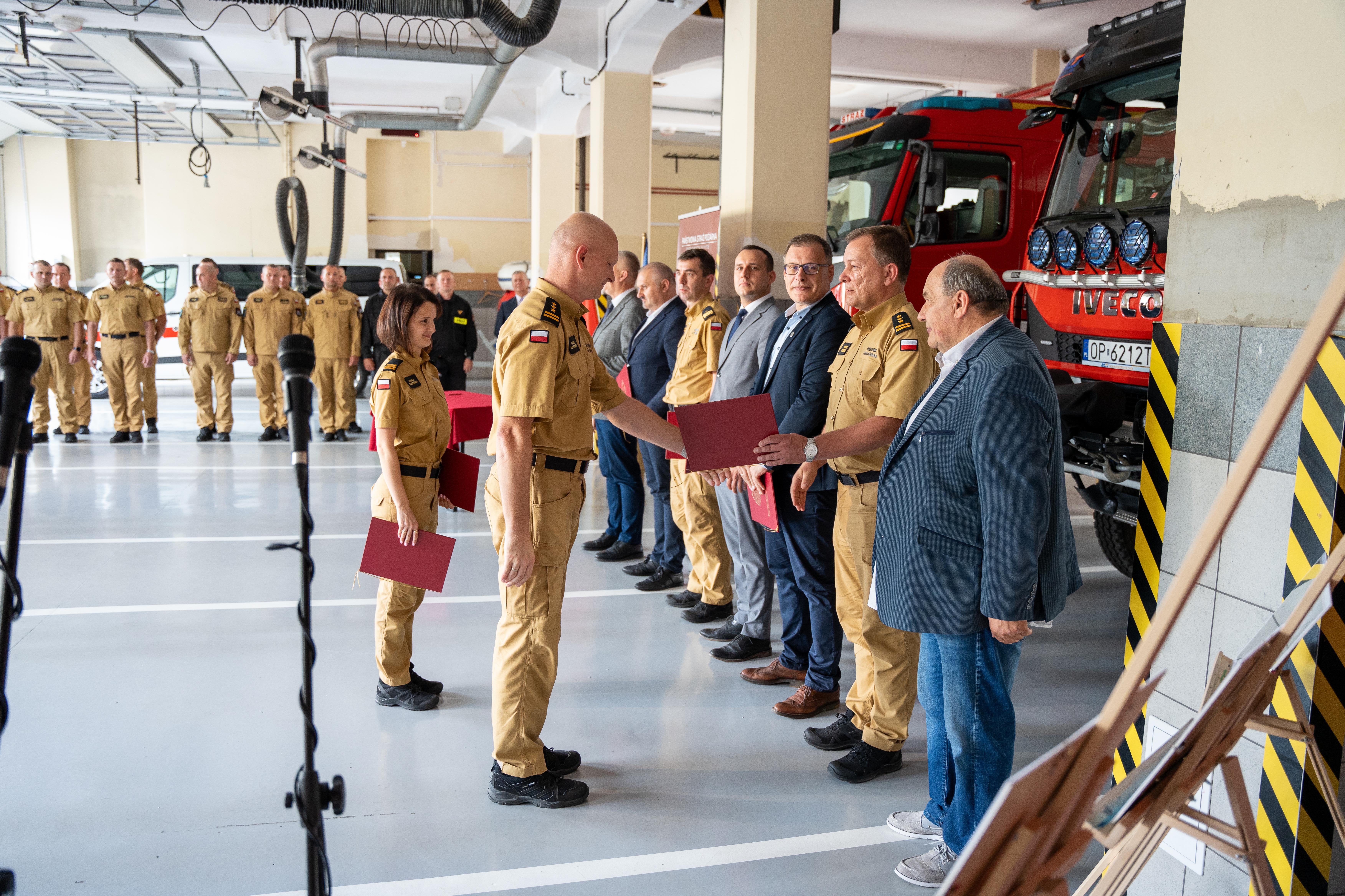 W uroczystości udział wzięli również: st. bryg. w st. spocz. Jan Miza, były zastępca komendanta głównego PSP; bryg. w st. spocz. Jan Boćwiński oraz st. bryg. w st. spocz. Marek Makówka byli komendanci powiatowi PSP w Nysie.