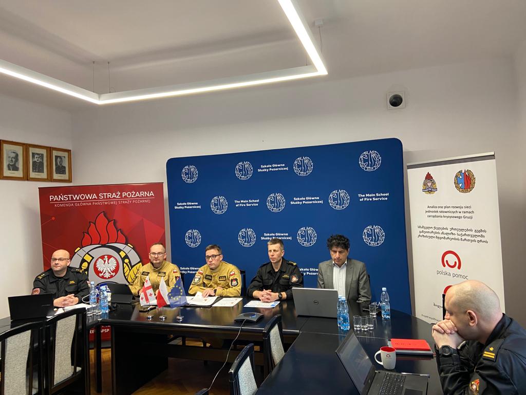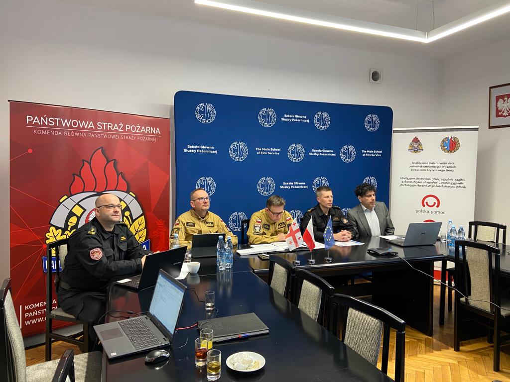 21 grudnia br. w Szkole Głównej Służby Pożarniczej przeprowadzono wideokonferencje stanowiącą podsumowanie drugiego roku współpracy Państwowej Straży Pożarnej ze Służbą Zarządzania Kryzysowego Gruzji, realizowaną w ramach trzyletniego programu współpracy pt. „Analiza oraz plan rozwoju sieci jednostek ratowniczych w ramach zarządzania kryzysowego w Gruzji”, realizowanego w latach 2021-2023 przez Komendę Główną Państwowej Straży Pożarnej (BPO, BOL) oraz Szkołę Główną Służby Pożarniczej ze środków polskiej współpracy rozwojowej Ministerstwa Spraw Zagranicznych RP.