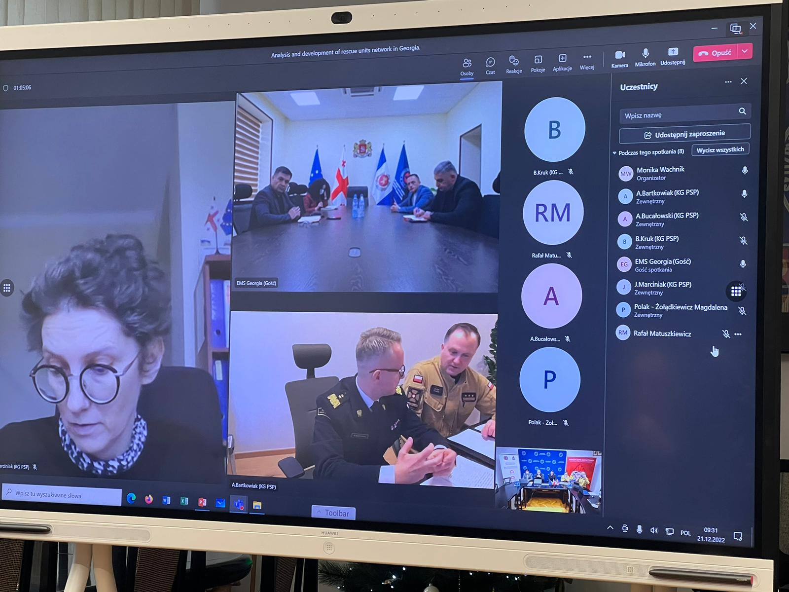 W wideokonferencji udział wzięli przedstawiciele: Departamentu Współpracy Rozwojowej Ministerstwa Spraw Zagranicznych, Ambasady Gruzji w Polsce, Biura Planowania Operacyjnego KG PSP, Biura Ochrony Ludności KG PSP a także Szkoły Głównej Służby Pożarniczej.