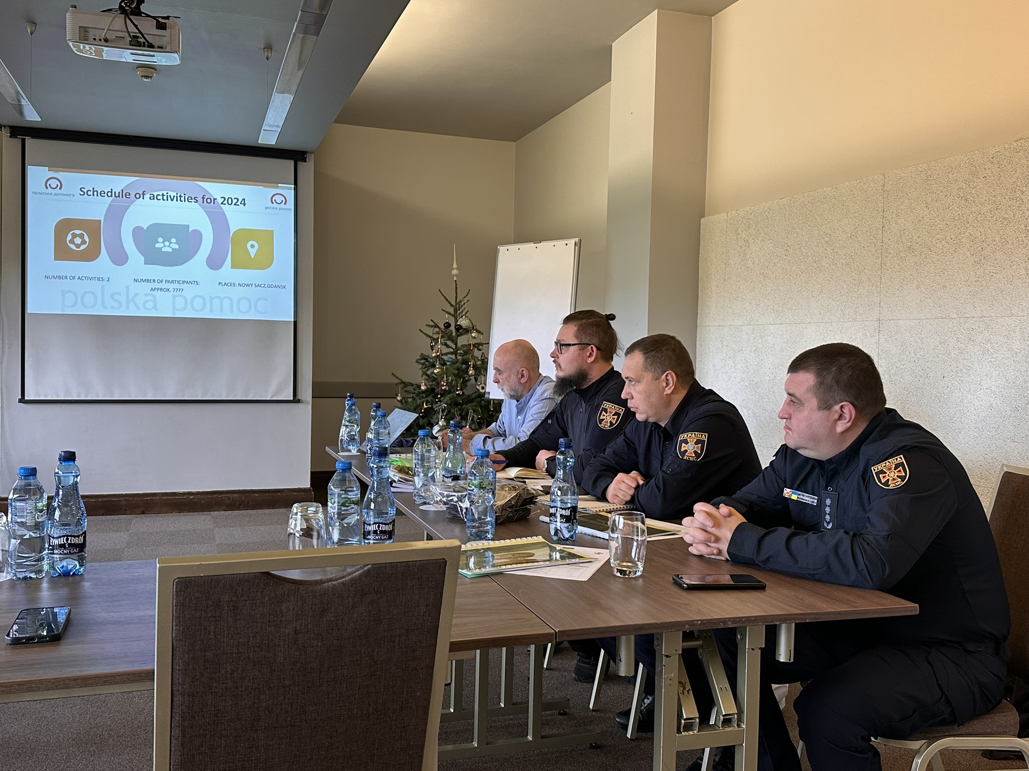 W dniach 18-20 grudnia 2024 r. odbyło się podsumowanie działań związanych z realizacją projektu "Poprawa efektywności działań grupy poszukiwawczo-ratowniczej Ukrainy poprzez podniesienie kompetencji kadry zarządczej, doskonalenie umiejętności technicznych członków grupy oraz rozbudowę centrum treningowego - poligonu grupy".