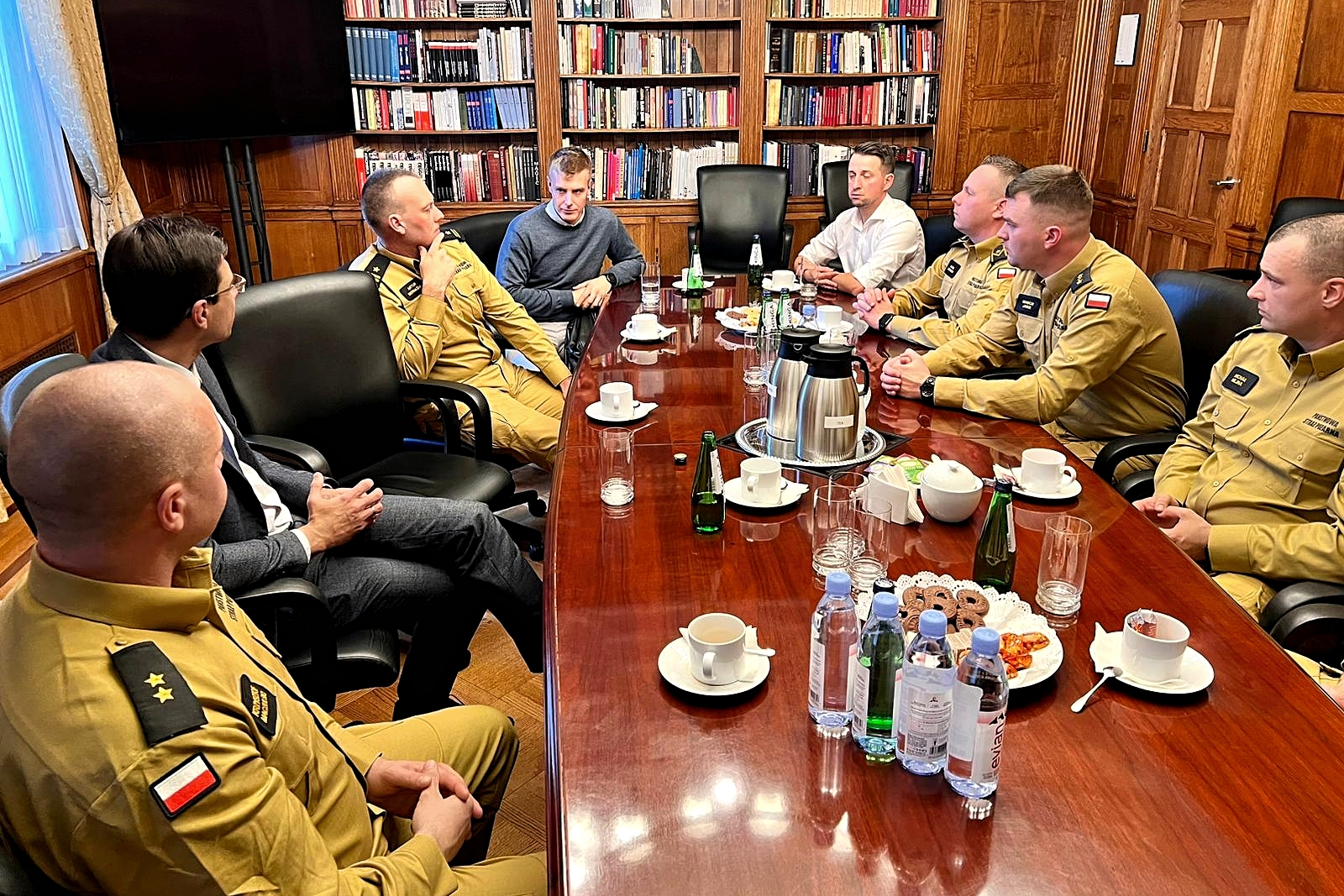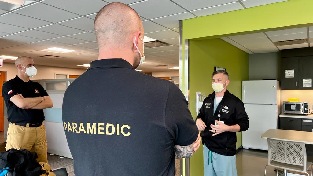 Polscy ratownicy medyczni tego dnia udali się również do Konsulatu RP w Chicago, gdzie spotkali się z Konsulem RP w Chicago Panem Pawłem Zyzakiem. Rozmowa przebiegła w bardzo przyjaznej atmosferze, mieli okazję opowiedzieć nie tylko o aktywnościach w trakcie delegacji, ale również o jej tle czyli planowanych w ramach procedowanej ustawy o ochronie ludności oraz o stanie klęski żywiołowej, zmianach w Państwowej Straży Pożarnej i zwiększeniu roli ratownictwa medycznego w PSP. Pan Konsul wykazał duże zainteresowanie sytuację ratowników medycznych i strażaków w Polsce, a także ich zaangażowaniem w działania pomocowe dla Ukrainy związane ze zbrojną inwazją Rosji na ten kraj.