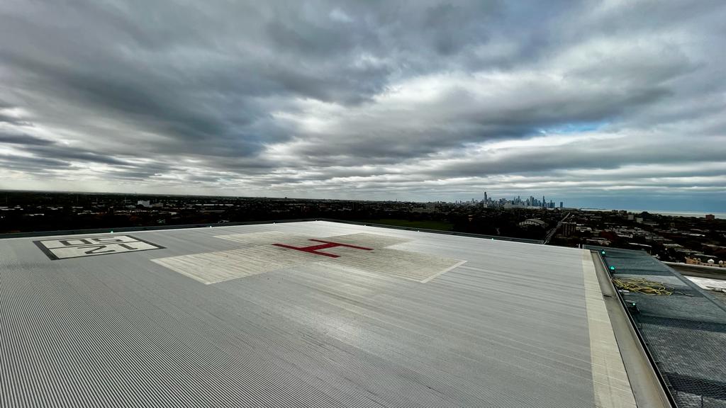 Następnie skierowaliśmy się do Emergency Room, gdzie organizacja pracy i ilość pacjentów są już bardziej zbliżone do warunków jakie znamy z naszych szpitalnych oddziałów ratunkowych. Bardzo interesującym miejscem, które zobaczyliśmy było położone na 13. piętrze szpitala lądowisko dla śmigłowców, stanowiące jednocześnie bazę dla należącego do szpitala śmigłowcowego zespołu transportowego.