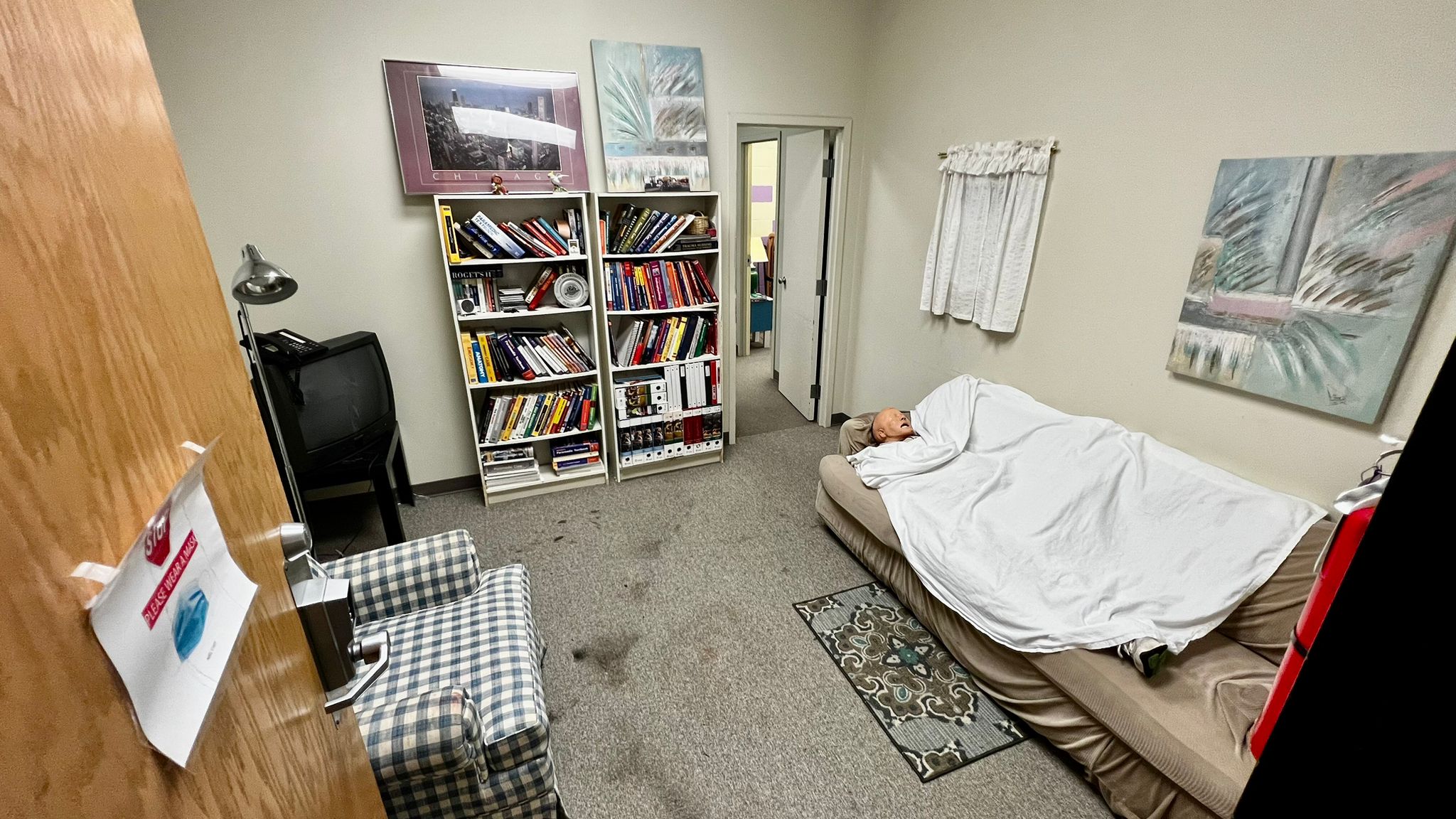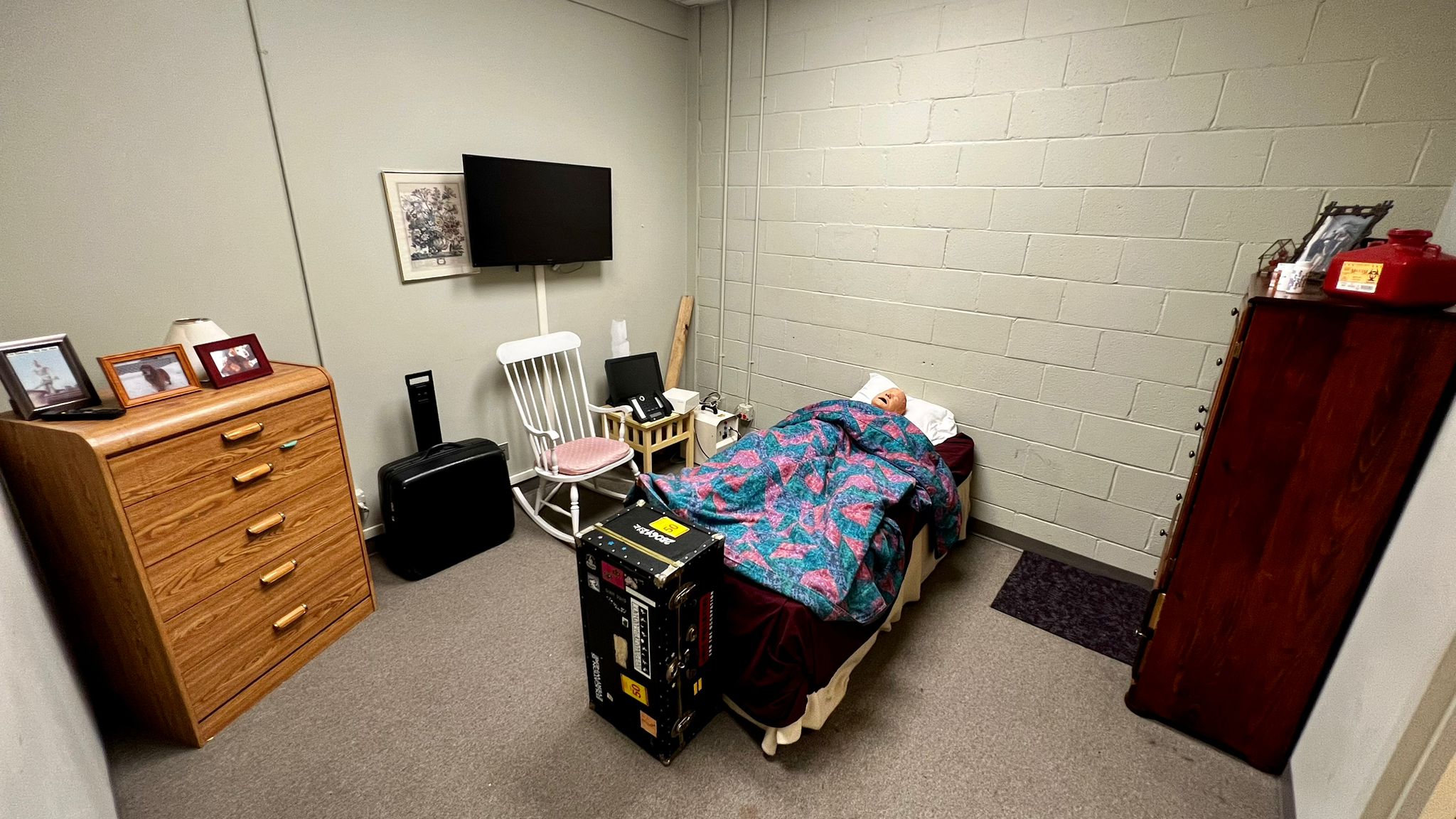 Po powrocie do ośrodka szkoleniowego delegacja udała się do centrum symulacji medycznej, gdzie została zapoznana przez instruktorów z infrastrukturą, wyposażeniem szkoleniowym i procedurami prowadzenia symulacji medycznej. Na uwagę zasługuje fakt, że centrum umożliwia przeprowadzenie scenariusza w pomieszczeniach symulujących mieszkanie takich jak: łazienka, pokój dziecięcy, sypialnia, a także miejsce publiczne - bar.