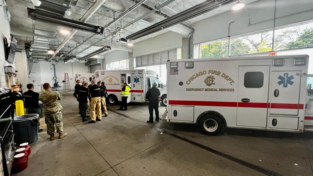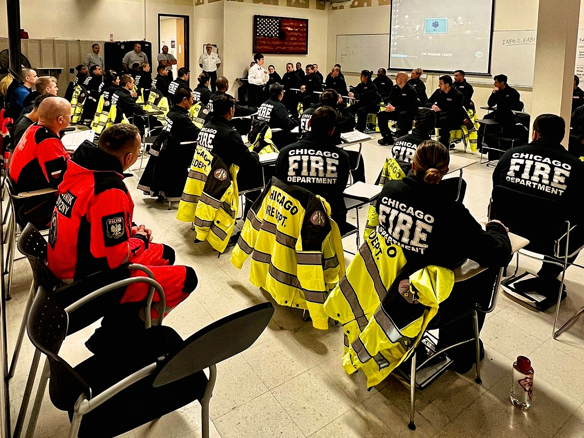 Nasza delegacja wzięła udział w zajęciach dla paramedyków, którzy rozpoczynają służbę w Chicago Fire Department, a którzy do tej pory pracowali w sektorze prywatnym. Wykład dotyczył działań z zakresu ratownictwa wodnego prowadzonych przez Chicago Fire Department i tego jaką rolę pełnią w nich paramedycy z ambulansów. W trakcie zajęć cała grupa udała się na wybrzeże Jeziora Michigan, gdzie strażaccy nurkowie zaprezentowali praktyczne umiejętności poszukiwania i podejmowania poszkodowanych z wody.