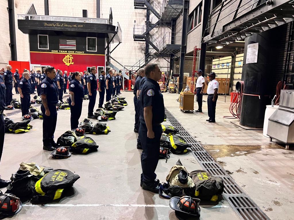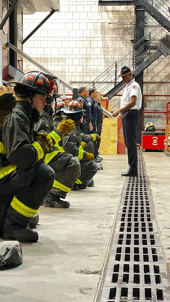 Wizyta rozpoczęła się w trakcie trwania porannego apelu, na którym 60 osób obecnie odbywających kurs kadetów, składało raport i ćwiczyło ubieranie środków ochrony indywidualnej. Według przekazanej wiedzy, podstawowy kurs strażaka trwa 3 miesiące i poprzedzony jest również 3 miesięcznym szkoleniem medycznym (każdy strażak jest paramedykiem - Emergency Medical Technician).