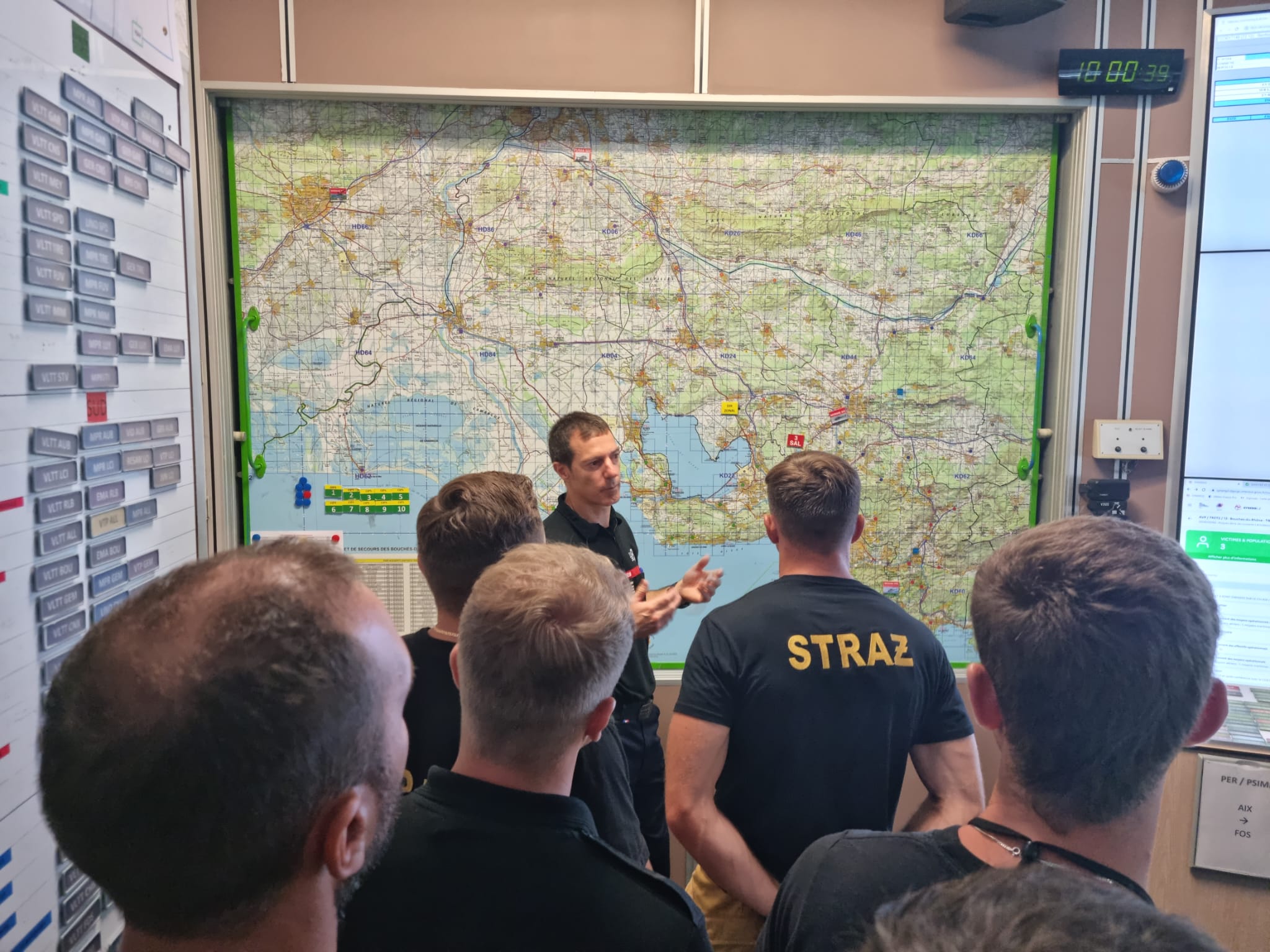 - siedzibę Straży Pożarnej Departamentu Bouches-du-Rhône (Service Départemental D'incendie de Secours des Bouches-du-Rhône), gdzie powitał ich zastępca komendanta Departamentu Col. Jean-Christophe Martini. W jednostce zapoznali się z codzienną pracą francuskich strażaków na stanowisku kierowania, a także zgłębili wiedzę na temat rozwiązań operacyjnych stosowanych podczas działań, wykorzystania map, nadzoru nad zadysponowanymi siłami oraz ich lokalizacją. Ponadto, poznali stosowane tam metody wizualizacji miejsca prowadzonych działań i rozwoju sytuacji pożarowej, z wykorzystaniem statków powietrznych.