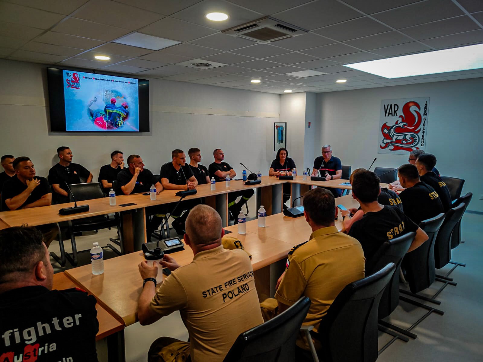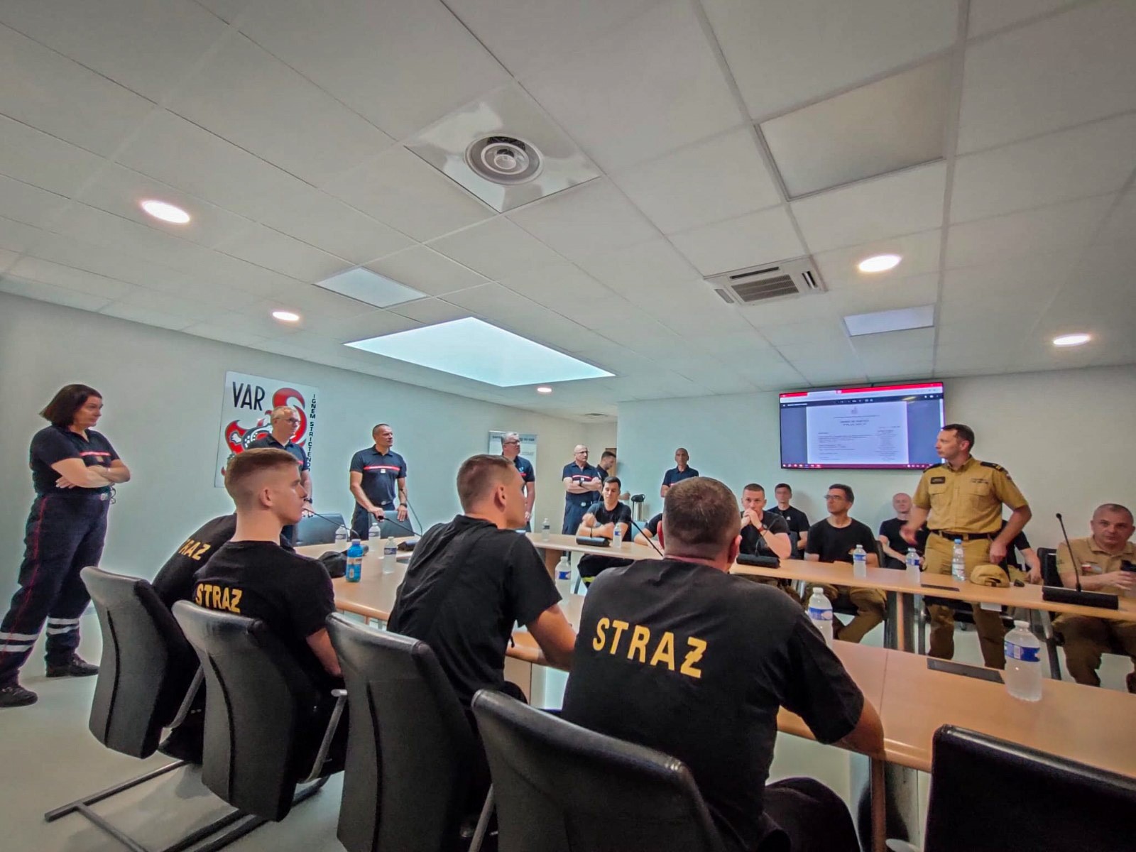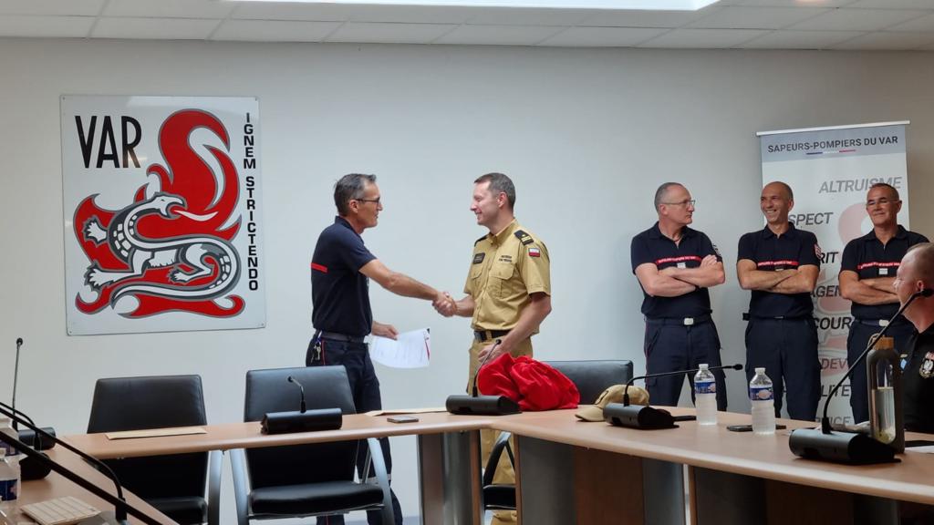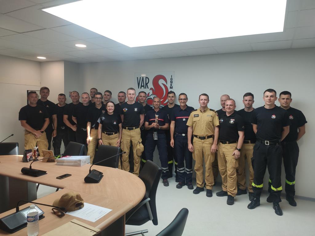 Grupa przemieściła się do Le Muy do siedziby departametu 83 - Service Departemental D`Incendie Et De Secours Du VAR, gdzie zastępca Dyrektora Departamentu Frédéric GOSSE podziękował obydwu zespołom za współpracę, wymianę doświadczeń oraz zaangażowanie. Strażacy otrzymali pamiątkową odznakę departamentu 83 du Var oraz certyfikat ukończenia szkolenia w zakresie taktyki działań związanej z gaszeniem pożarów lasów i terenów naturalnych we Francji. Dowódcy obydwu modułów uczestniczyli w briefingu podsumowującym tygodniową współpracę ze stroną francuską. W trakcie odprawy każda ze stron przedstawiła swoje spostrzeżenia oraz uwagi dotyczące wzmocnienia i polepszenia współpracy.