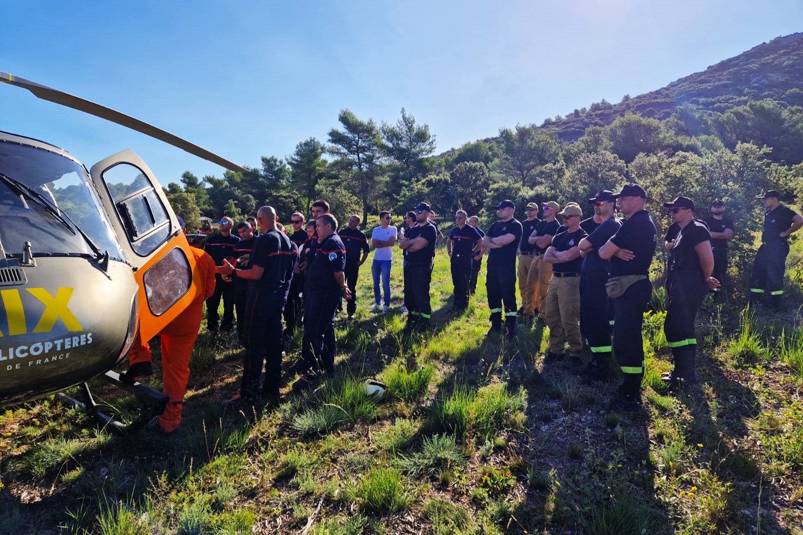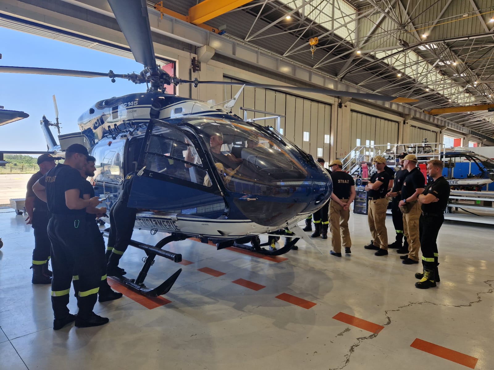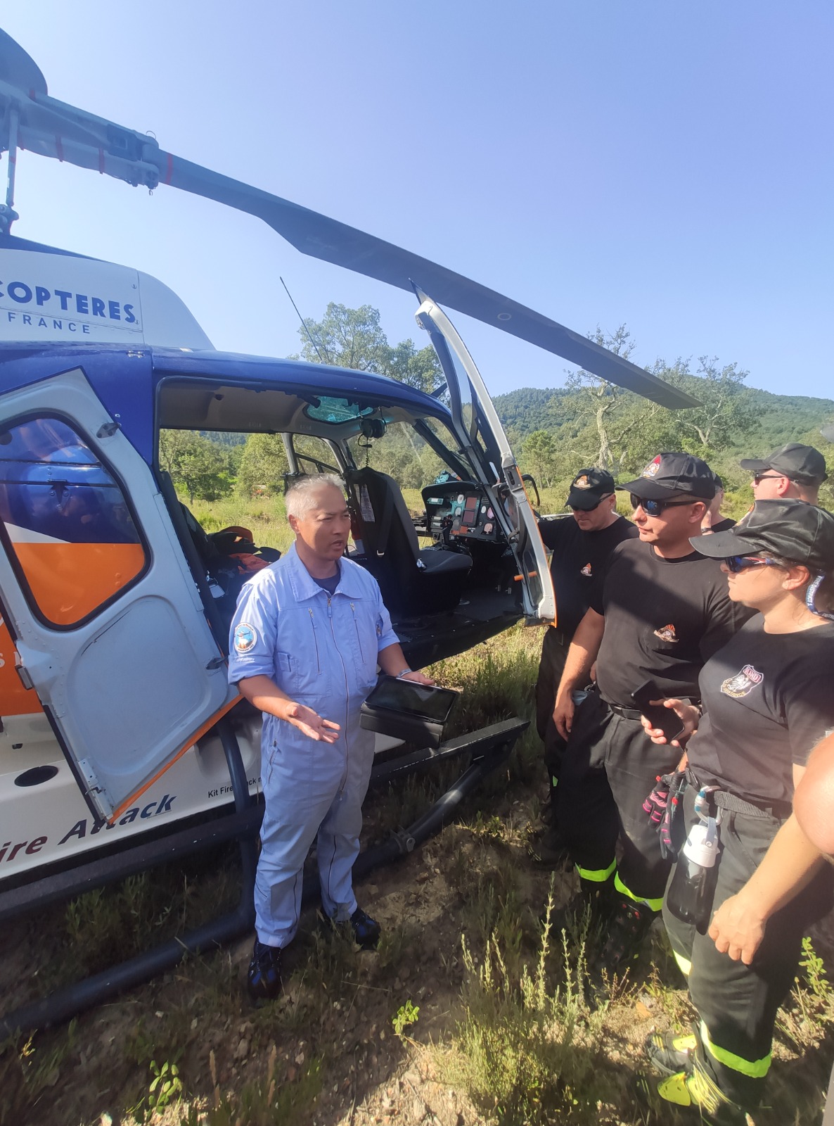 W dalszej części dnia grupa uczestniczyła w prezentacji helikoptera EC225, który jest do dyspozycji francuskich strażaków w okresie palności i służy przy gaszeniu pożarów lasów z użyciem zbiornika Bambi Bucket. Piloci oraz załoga przedstawili charakter ich pracy, sprzęt dostępny w helikopterze, metody i techniki działań oraz zasady gaszenia pożarów z powietrza.