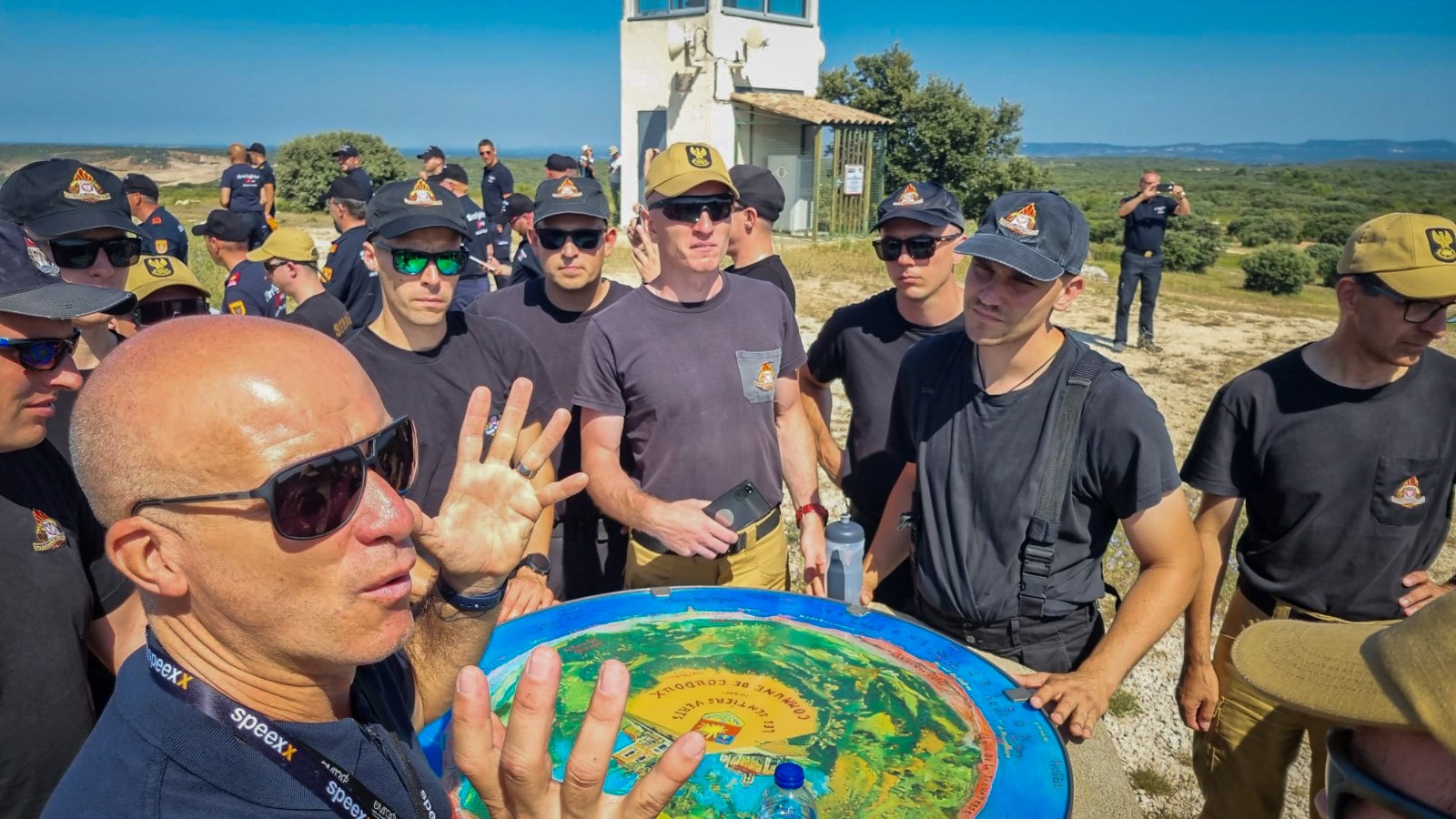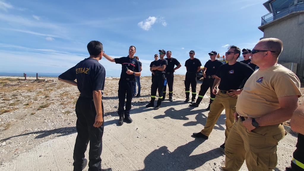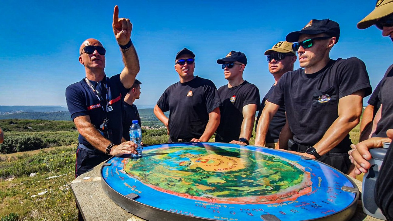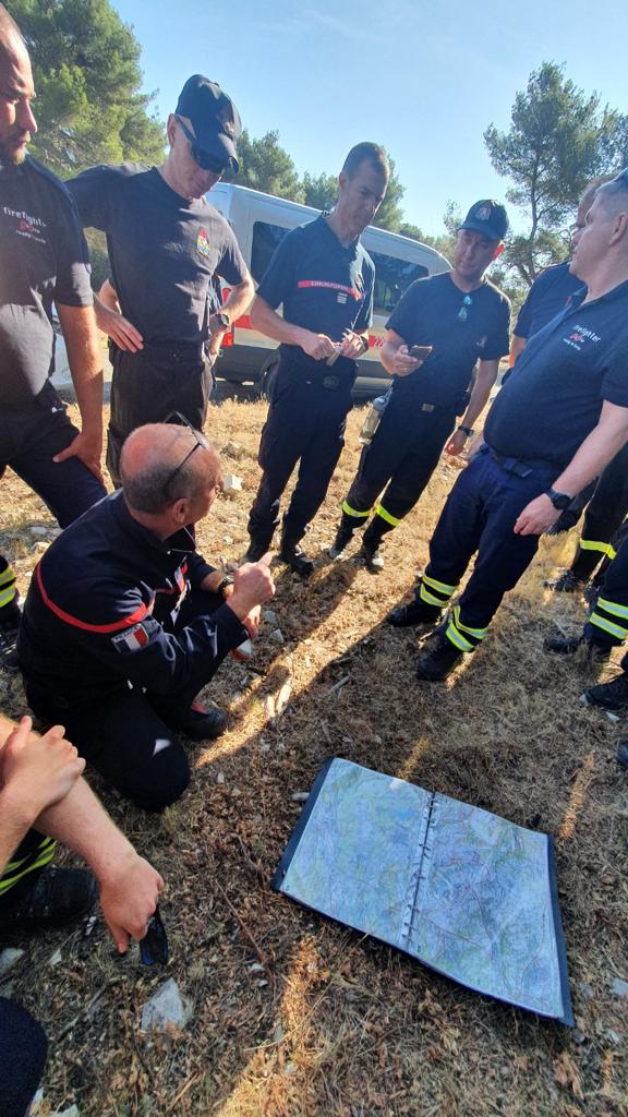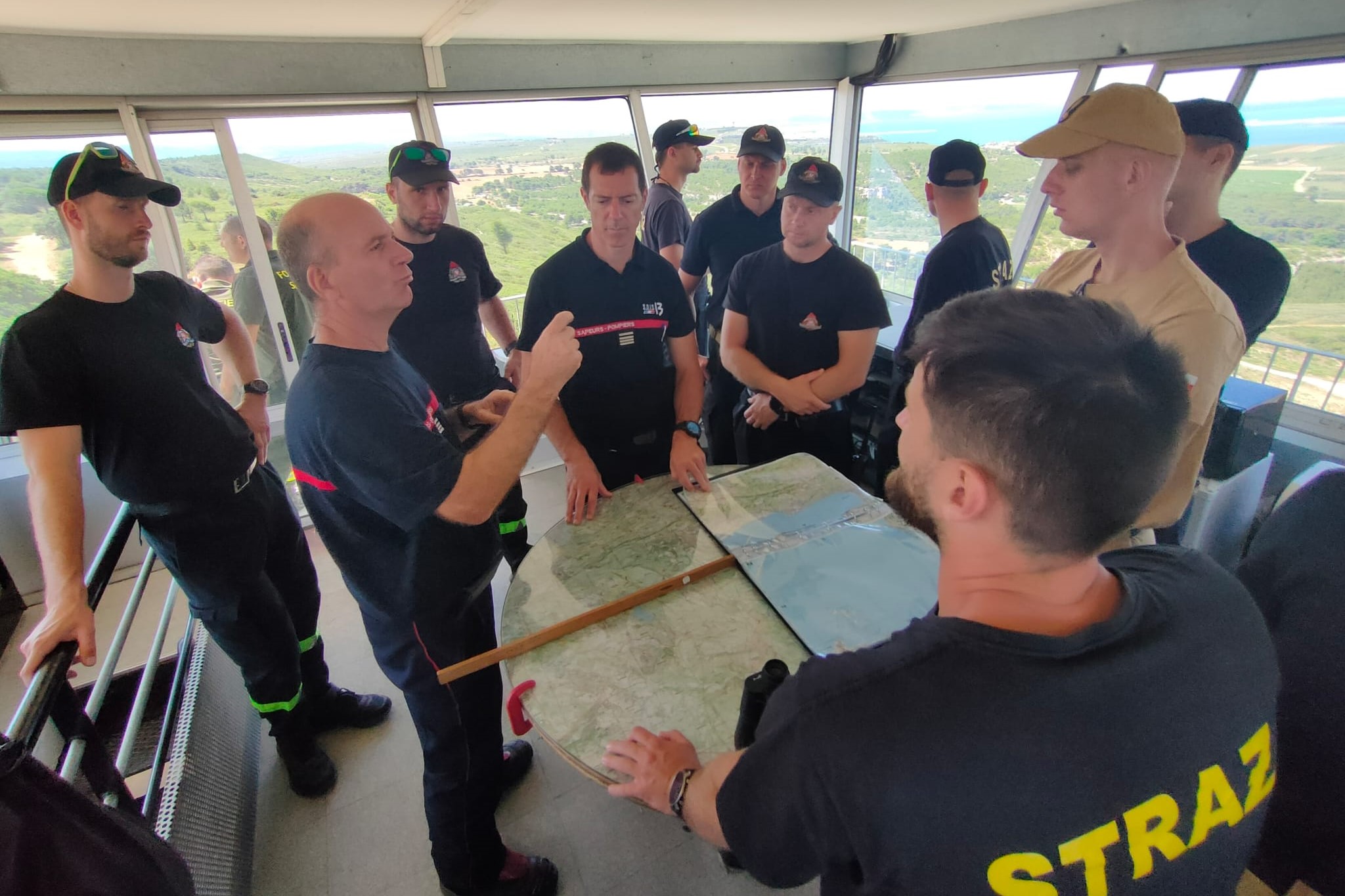 W środę polscy strażacy wzięli udział w zajęciach terenowych, których głównym celem było zapoznanie z topografią obszaru działania oraz systemem współrzędnych stosowanych przez francuską straż pożarną. Kolejnym punktem zajęć był instruktaż korzystania ze zbiorników wodnych naziemnych oraz podziemnych a na koniec grupa odwiedziła wieżę obserwacyjną, która jest podstawą systemu alarmowania o pożarze lasu.