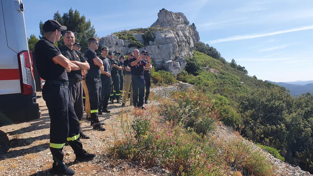 Następnie grupa została prepozycjonowana do jednostki w miejscowości Plan-d’Aups-Sainte-Baume specjalizującej się w działaniach wysokościowych, gdzie zapoznaliśmy się ze specyfiką działań strażaków oraz częścią rejonu chronionegoz tej jednostki.