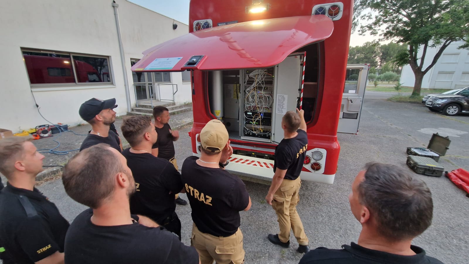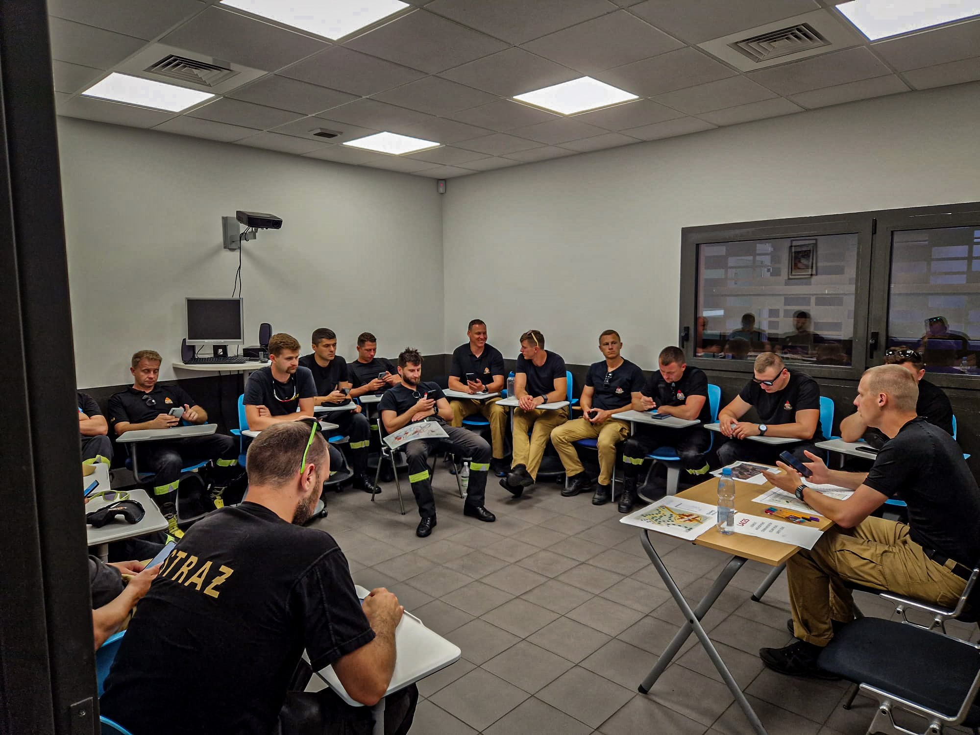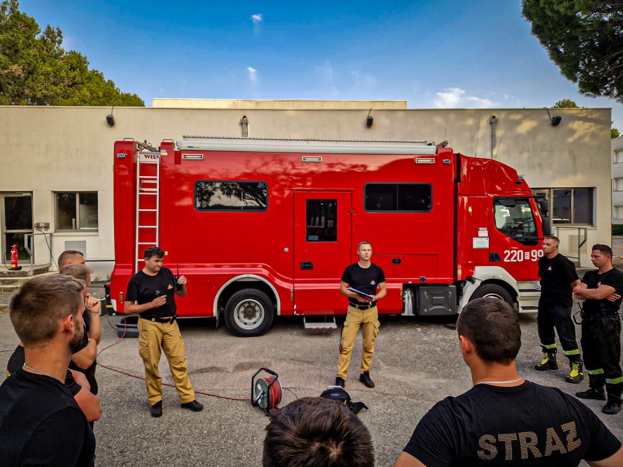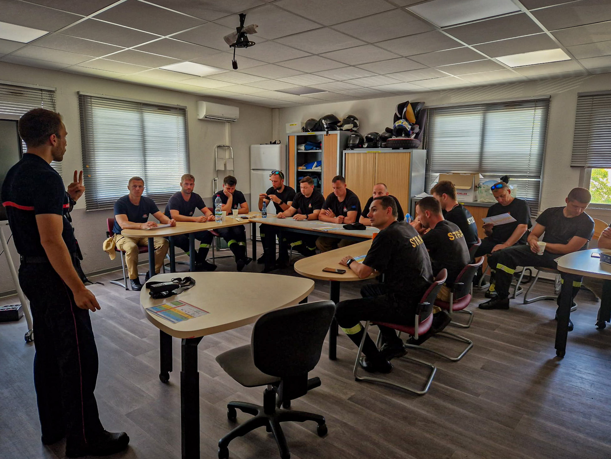 W środę, polscy strażacy odbyli szkolenie na terenie jednostki straży pożarnej w Salon-de-Provance. Podczas ćwiczeń, strażacy dokładnie zapoznali się ze strukturą dowodzenia francuskich strażaków podczas prowadzenia działań. Każdego dnia, grupa specjalistów na podstawie warunków pogodowych, dokonuje oceny sytuacji pożarowej obszaru chronionego. Po otrzymaniu wyników analizy, poszczególne zespoły interwencyjne rozmieszczane są według aktualnych potrzeb, w miejscach o podwyższonym ryzyku wystąpienia pożaru lasu. Polski zespół, w trakcie prowadzonego rozpoznania terenu działania, odwiedził dwa miejsca stacjonowania francuskich sił. Następnie, polscy strażacy zostali zaproszeni do ośrodka szkolenia regionu Bouches-du-Rhône. Oprócz komory rozgorzeniowej oraz dymowej, francuscy strażacy mogą pochwalić się symulatorem pożaru lasu. Metalowe drzewa zasilane paliwem gazowym, pozwalają na realne odzwierciedlenie warunków panujących podczas zwalczania pożaru lasu. Trenażer umożliwia symulację pożaru wierzchołkowego oraz ściółkowego.