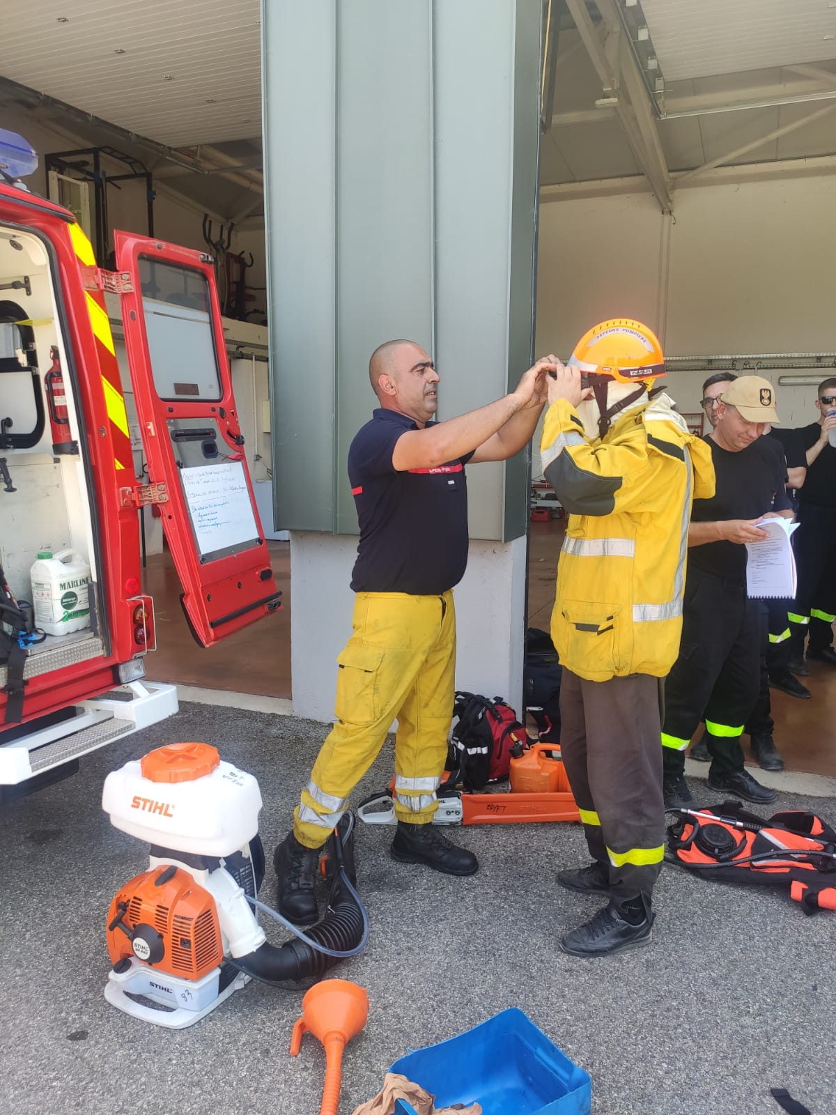 We wtorek polscy strażacy wraz z grupą strażaków z Austrii byli prepozycjonowani do jednostki w miejscowości Les Mayons, gdzie zaprezentowano im ochronę indywidualną strażaków biorących udział w działaniach gaśniczych lasów a także omówiono poziomy zabezpieczenia pojazdów przed ogniem.
