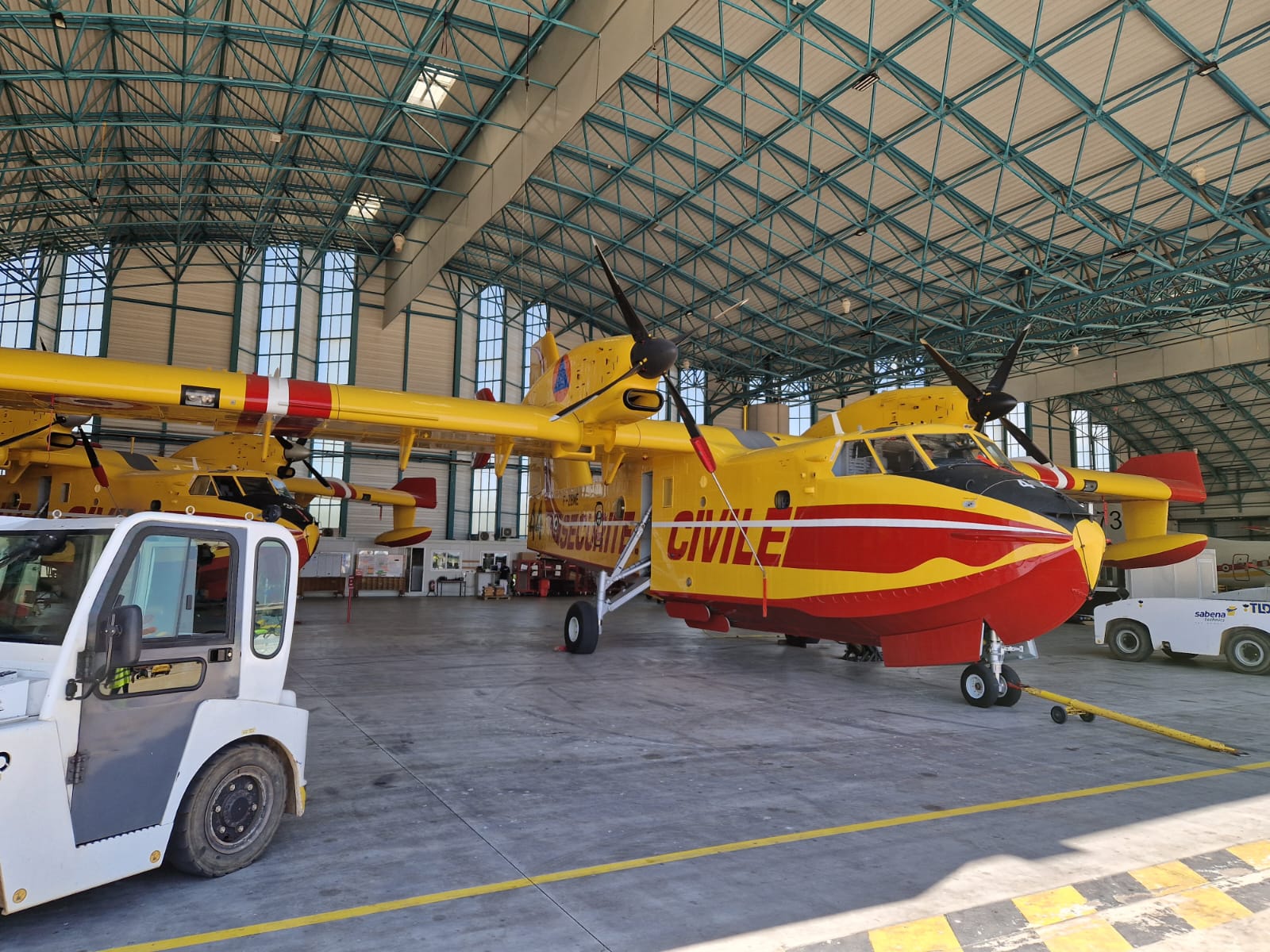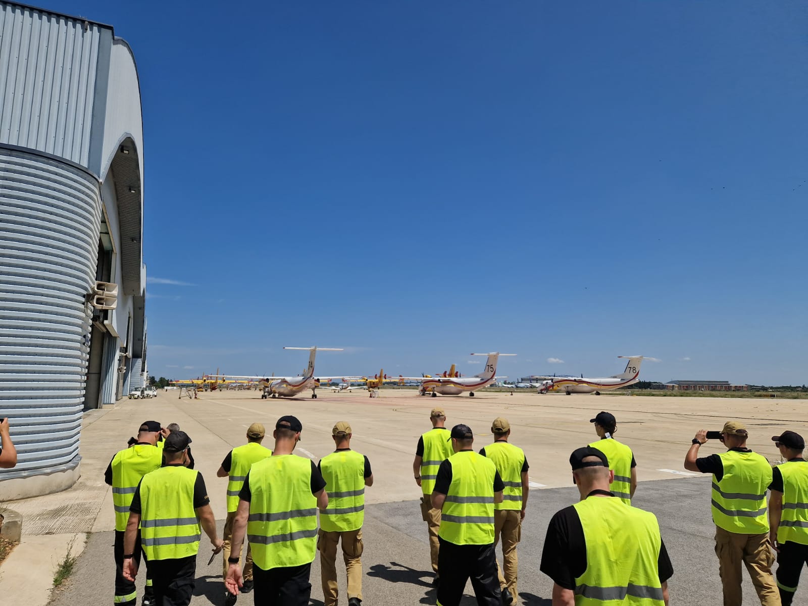 W dalszej części dnia, polscy strażacy mieli okazję poznać z bliska jednej z najczęściej spotykanych samolotów gaśniczych - Canadair. Samoloty te, potrafią zabrać na swój pokład 6000 litrów środka gaśniczego, którego tankowanie odbywa się w locie poprzez zbliżenie się do tafli wody. Kolejnym samolotem wykorzystywanym do zwalczania pożarów lasów jest Dash. Samolot ten, posiada zdolność transportu 10000 litrów retardantów - substancji stosowanej w celu spowolnienia lub zatrzymania rozprzestrzeniania się ognia.