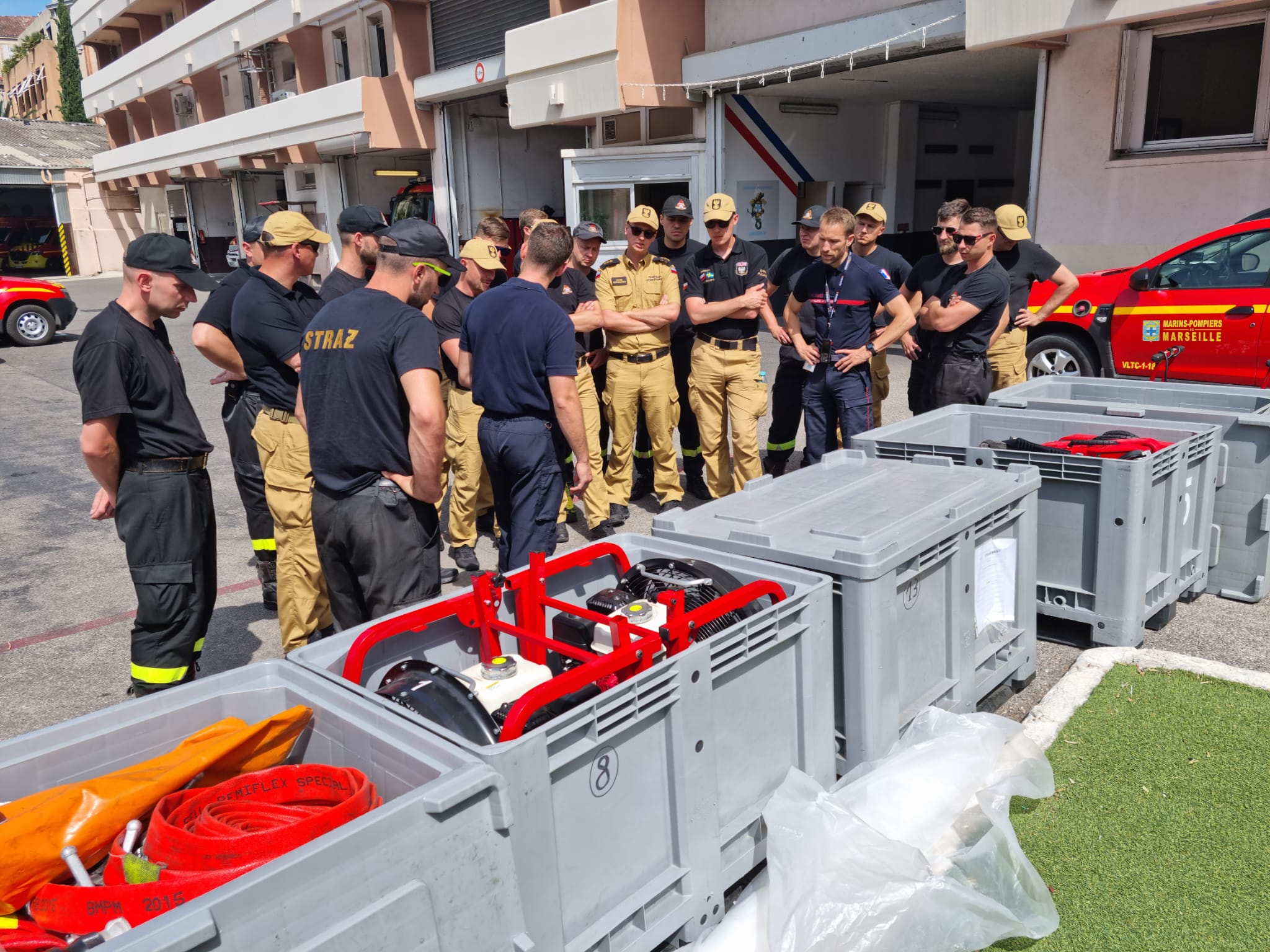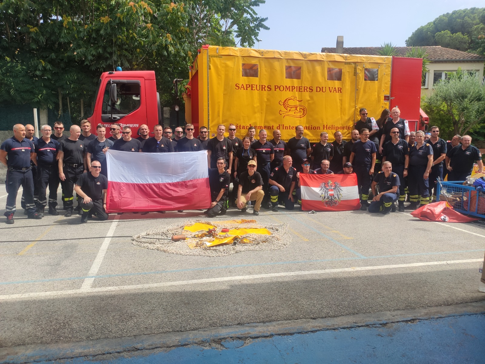 W niedzielę do polskich strażaków dołączyła grupa 20 strażaków z Austrii. Po odprawie, wyruszyli wspólnie na rozpoznanie terenów operacyjnych dystryktu Delta Rodanu, w rejonie dostrzegalni pożarowej Coudoux. Funkcjonariuszom przedstawiono sposoby oznakowania dojazdów i dróg pożarowych, prowadzonych przez tereny leśne oraz górzyste, które są wykorzystywane przez francuskie jednostki ochrony przeciwpożarowej podczas działań. Ponadto, przedstawiciel strony francuskiej omówił taktykę działań gaszenia pożarów na wizytowanych terenach.