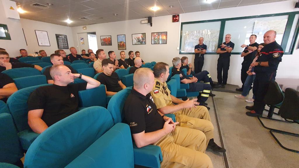 Polscy strażacy mieli również możliwość zapoznać się z wirtualnym centrum szkoleniowym, gdzie możliwe jest realizowanie szkoleń dwóch 12 osobowych grup, symulując warunki pożaru lasu przy wykorzystaniu helikopterów, samolotów, samochodów dowodzenia oraz przydzielanie zadań dowódcom poszczególnych odcinków, jak również możliwość wykorzystania komunikacji i sposobów przekazywanie informacji między sobą. Ciekawym zastosowanym rozwiązaniem jest możliwość zasymulowania stanu zagrożenia strażaka z wykorzystaniem gogli VR. Następnie polska grupa prepozycjonowana została do jednostki gaśniczej w miejscowości Aubagne, gdzie zapoznano ich z taktyką działań grupy LE DÉTACHEMENT D’INTERVENTION HÉLIPORTÉ EN FORMATION (DIH). Członkowie DIH prowadzą działania gaśnicze w miejscach trudno dostępnych, gdzie nie ma możliwości dojazdu samochodami pożarniczymi. W działaniach grupy wykorzystywane są śmigłowce, które transportują strażaków i sprzęt gaśniczy.