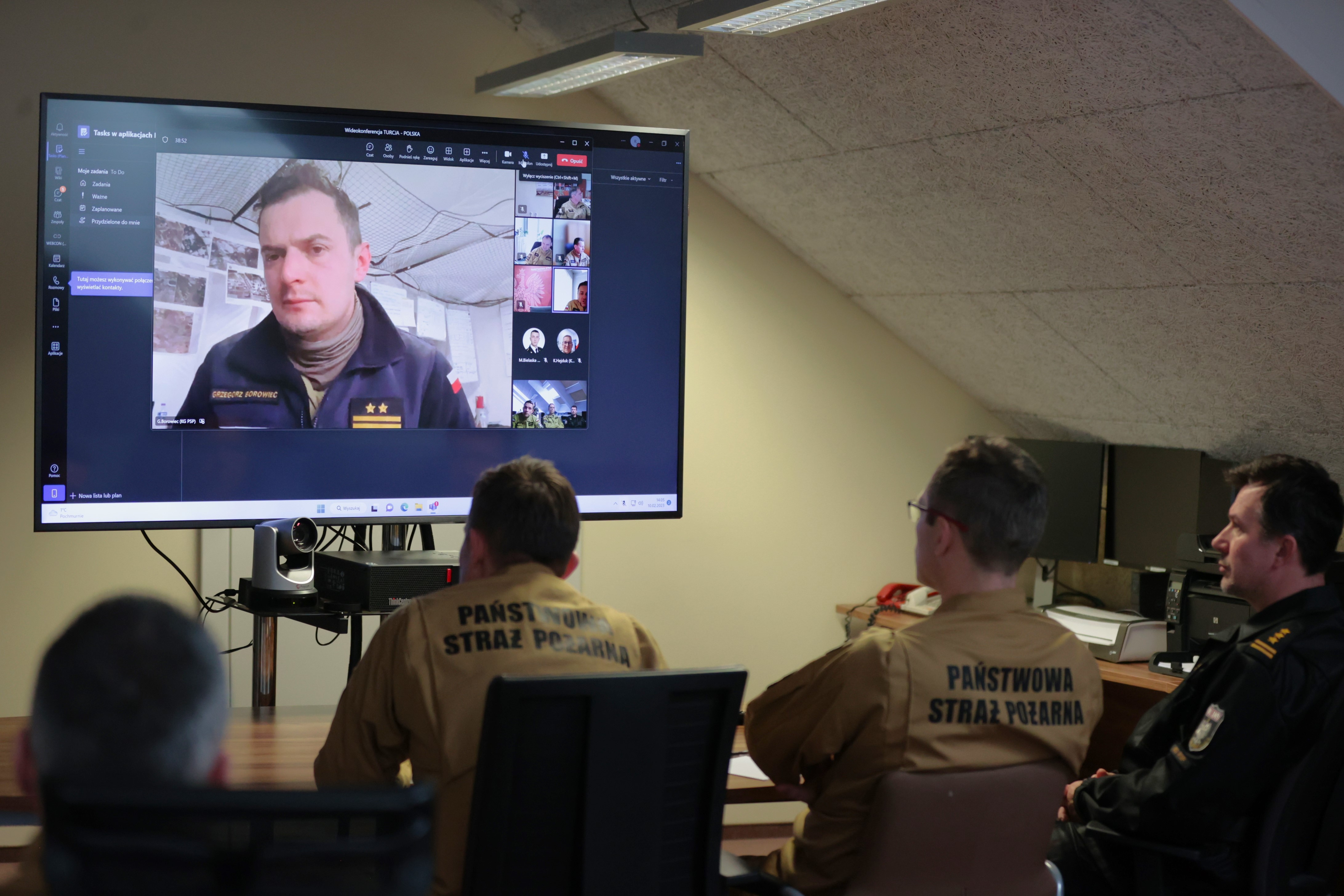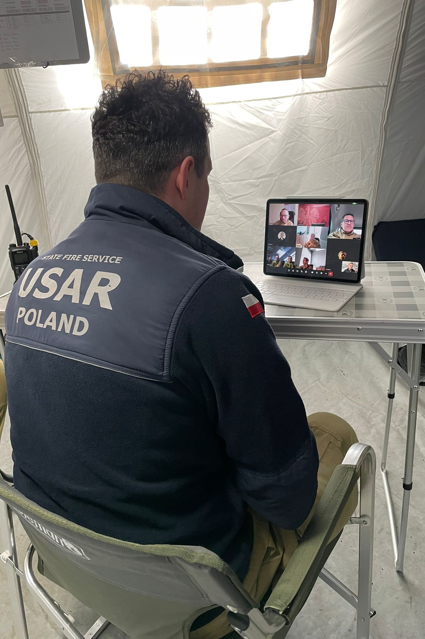 W godzinach popołudniowych zastępca komendanta głównego PSP, załoga Biura Planowania Operacyjnego KG PSP i Stanowiska Kierowania oraz Biura Bezpieczeństwa Informacji połączyli się w trybie wideokonferencji z dowództwem HUSAR Poland, aby wymienić informacje w zakresie trwającej akcji poszukiwawczo – ratowniczej, w tym również w zakresie zapewnienia łączności.