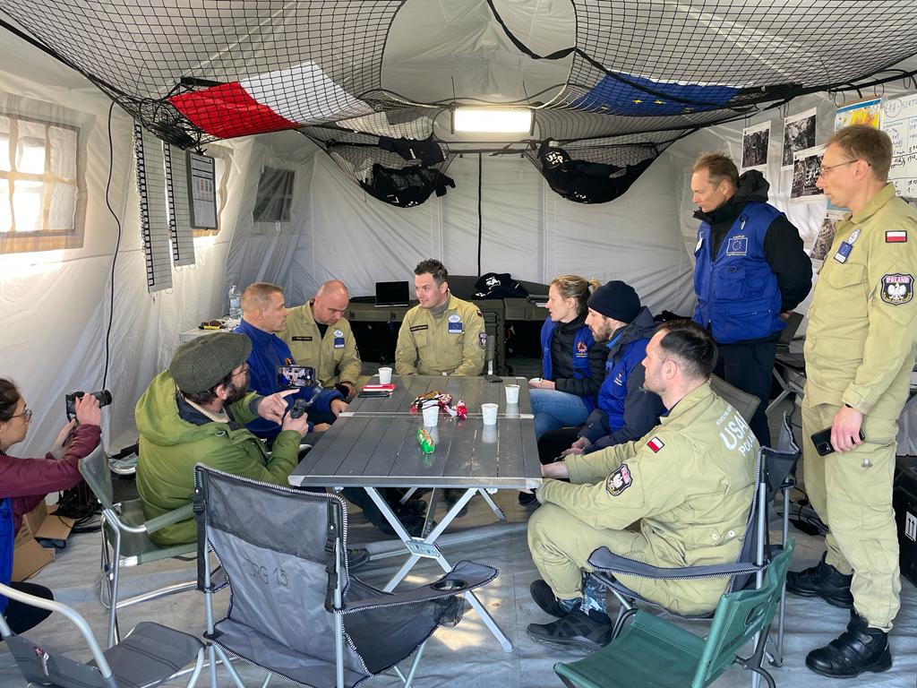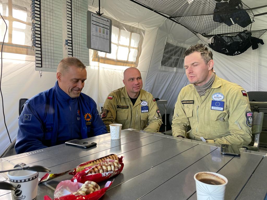 W bazie i w strefie prowadzonych działań HUSAR Poland, dowództwo grupy spotkało się z Team Leader EUCPT Pekka Tiainen, z którym rozmawiano o prowadzonej przez naszą grupę akcji poszukiwawczo - ratowniczej oraz możliwości wsparcia przez HUSAR Poland, Reception and Departure Centre (RDC), tworzonego na lotnisku w Gaziantep a także planach na kolejne dni.