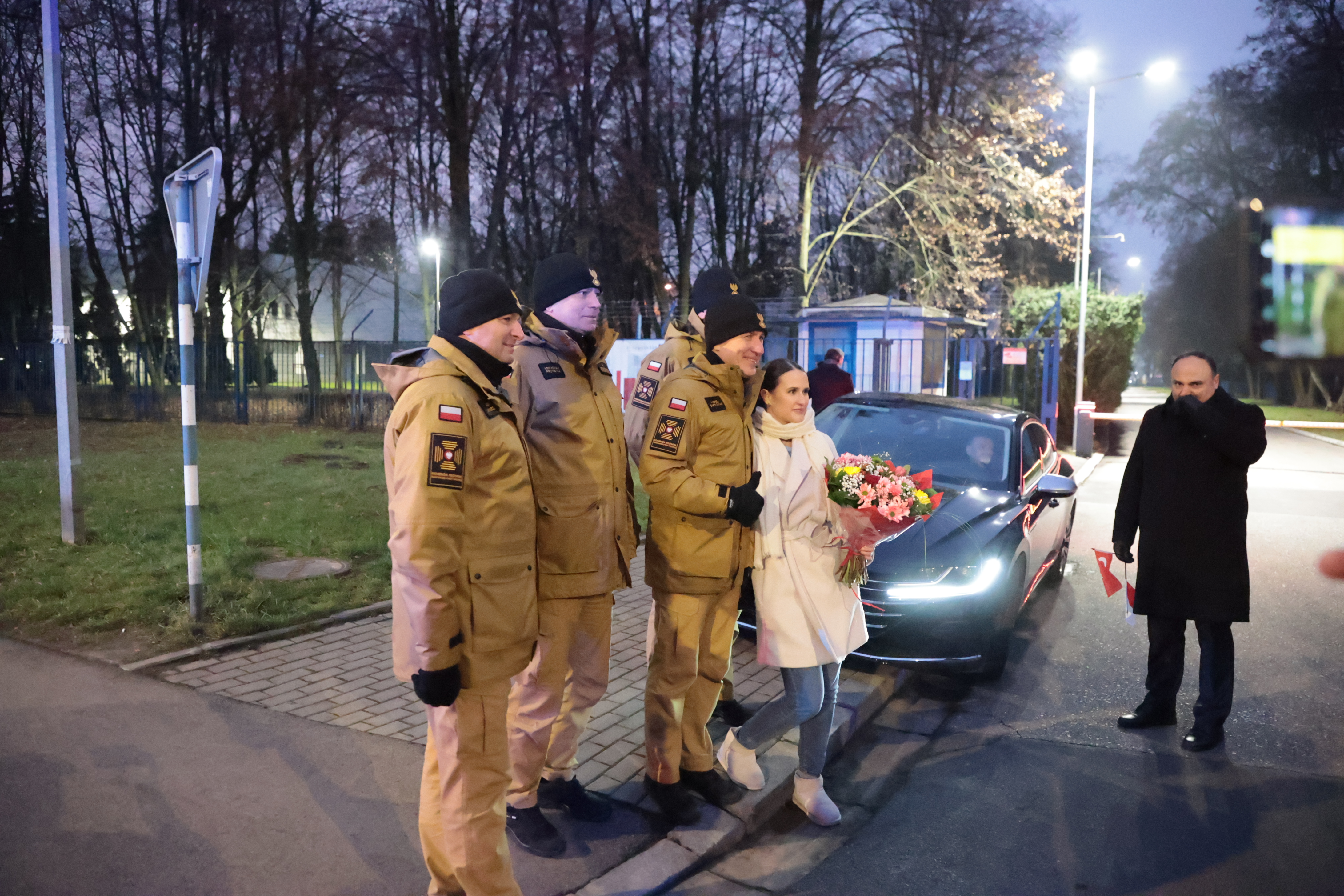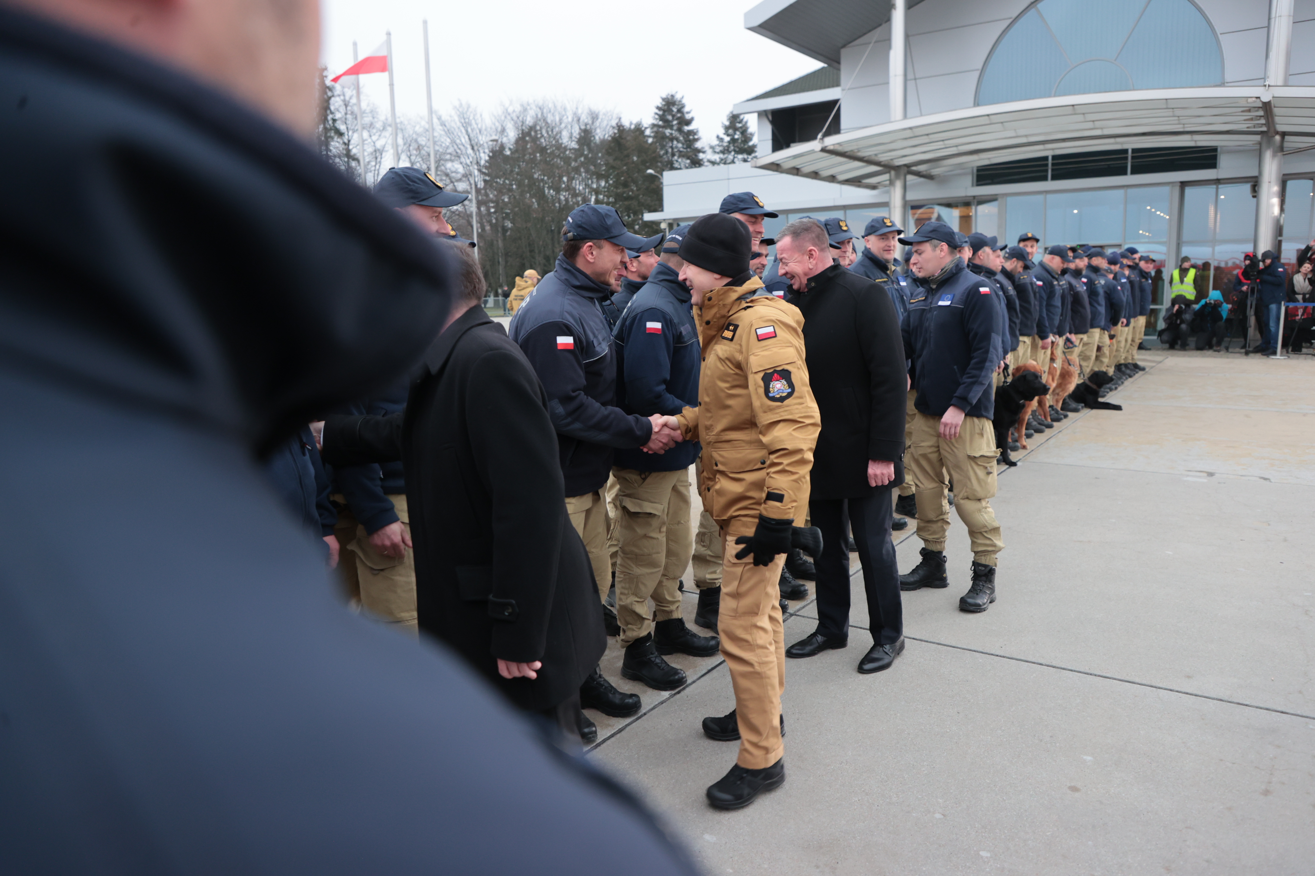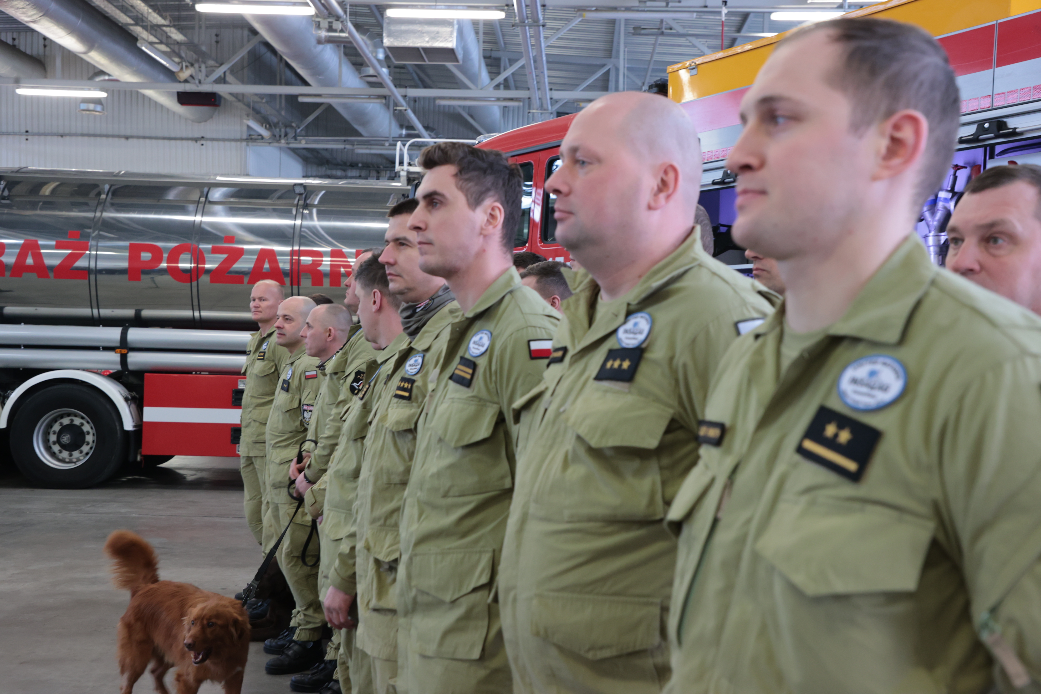15 lutego 2023 roku po godz. 16:00 na terenie Wojskowego Portu Lotniczego w Warszawie odbyło się uroczyste powitanie 76 strażaków ratowników z 8 psami ratowniczymi, medyków i ratowników górniczych. Wszyscy ratownicy zostali powitani przez ministra SWiA Pana Mariusza Kamińskiego, podsekretarza stanu w MSWiA Pana Bartosza Grodeckiego, zastępcę szefa BBN gen. bryg. rez. Mirosława Wiklika oraz komendanta głównego Państwowej Straży Pożarnej gen. brygadiera Andrzeja Bartkowiaka wraz z zastępcami.