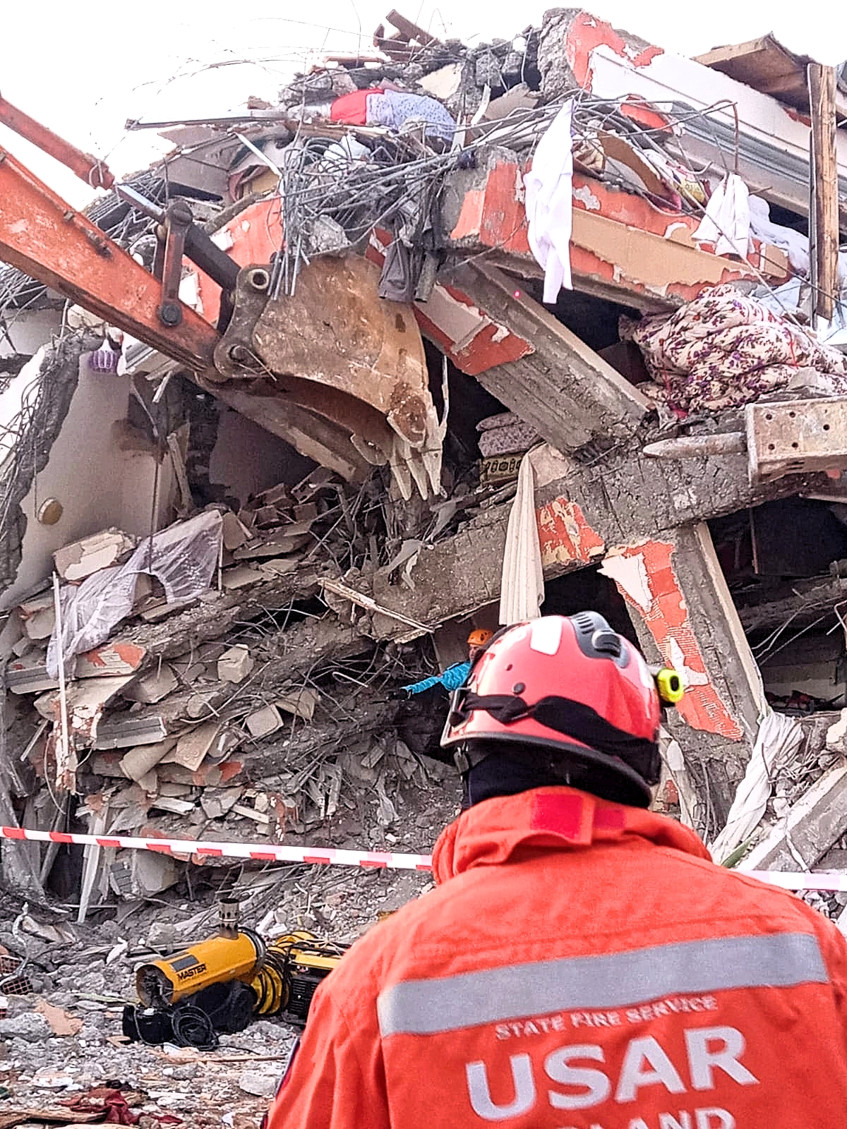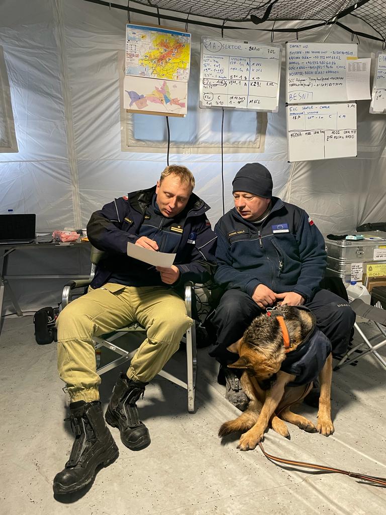 Bryg. Grzegorz Borowiec w trakcie rozmowy przekazał między innymi: „Dziś w nocy zaczęliśmy pracować razem z grupą z Bułgarii, walczymy już ponad 12 godzin, żeby wykonać dostęp do osoby, z którą uzyskaliśmy kontakt ale jesteśmy już bardzo blisko... Na innych obiektach nasze psy ujawniły i zaczęły oznaczać potencjalne miejsca żywych poszkodowanych i jest jeszcze szansa na wydobycie kolejnych osób... Trzeba przy tym pamiętać, że każda jedna sytuacja wydobycia jest tutaj inna…”.